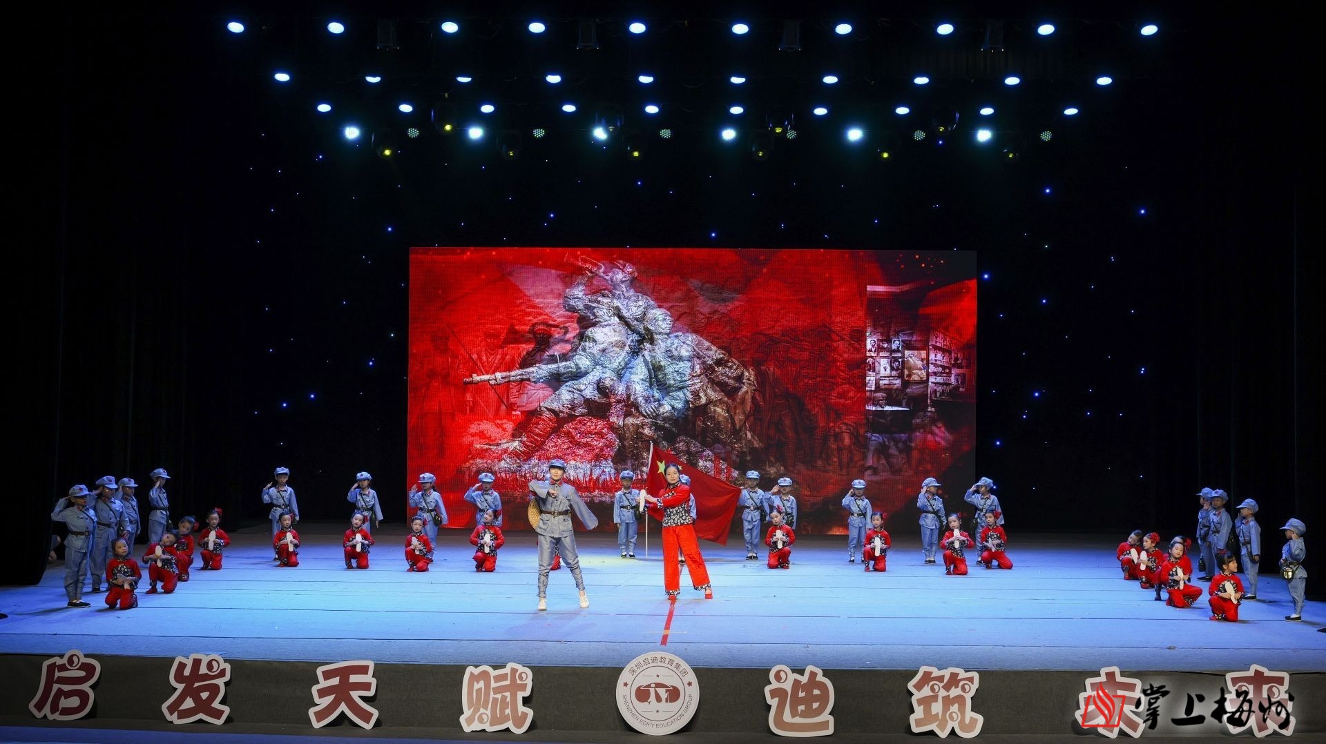 此次文艺汇演可谓莺歌燕舞、允文允武。既有悠远清亮的歌唱表演,又有顿挫有力的园长朗诵;不仅有浓情四射的亲子表演,也有仙袂翩翩的古典舞表演;非但有古韵飘香的诗词歌赋,更还有正气凛然的红军精神。“不忘初心”几个大字恢弘地写在宏大的舞台背景之上,更照亮了台上舞动的艺术精灵们。