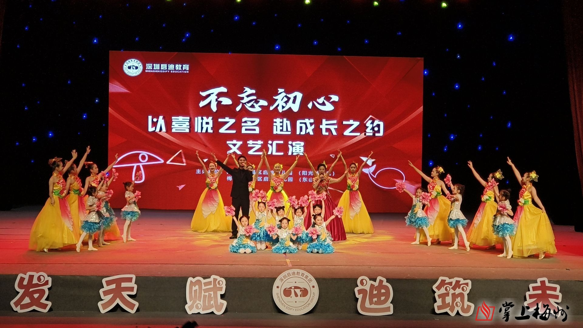 6月18日,深圳启迪教育集团旗下梅县区启迪幼儿园和梅江区启迪幼儿园两所幼儿园全园师生连同一部分家长在濛濛细雨里享受着启迪娃娃带来的艺术浸润。这是一场“不忘初心——以喜悦之名 赴成长之约”文艺汇报演出,凝聚了两园师生的共同努力。在整个文艺汇演筹备期间,各个班级根据自己班孩子年龄特点,精心排演各类节目,由园领导细心指导、一次次的调整、一次次的整合,最后确定了18个节目参加汇报演出。