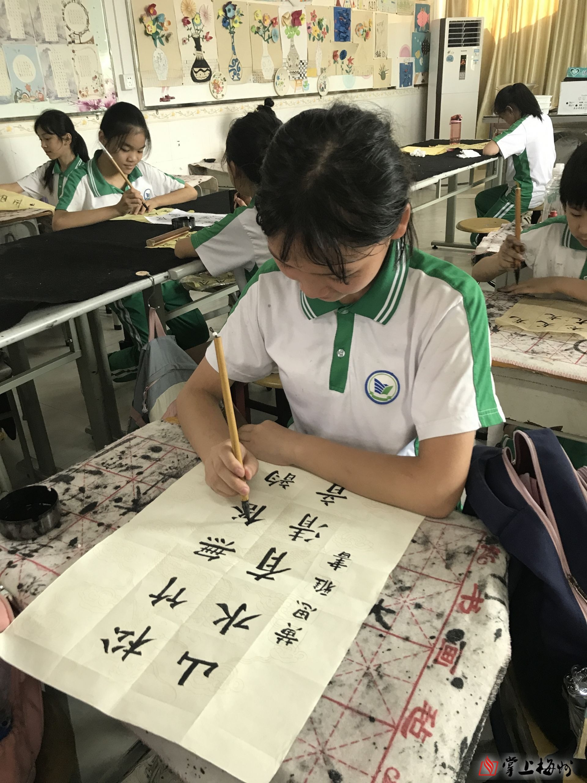 “字如其人”“笔正则身正”“学书先学做人”……无不揭示着书法与育人的关系。“我们在推进书法教育时,以‘传承翰墨国粹,书法育人塑品格’为目标,要求师生以‘立字’为载体,‘立人’为根本,充分发挥书法艺术美的育人功能,使学生心智与德行一同成长。”潘柳明说道。
