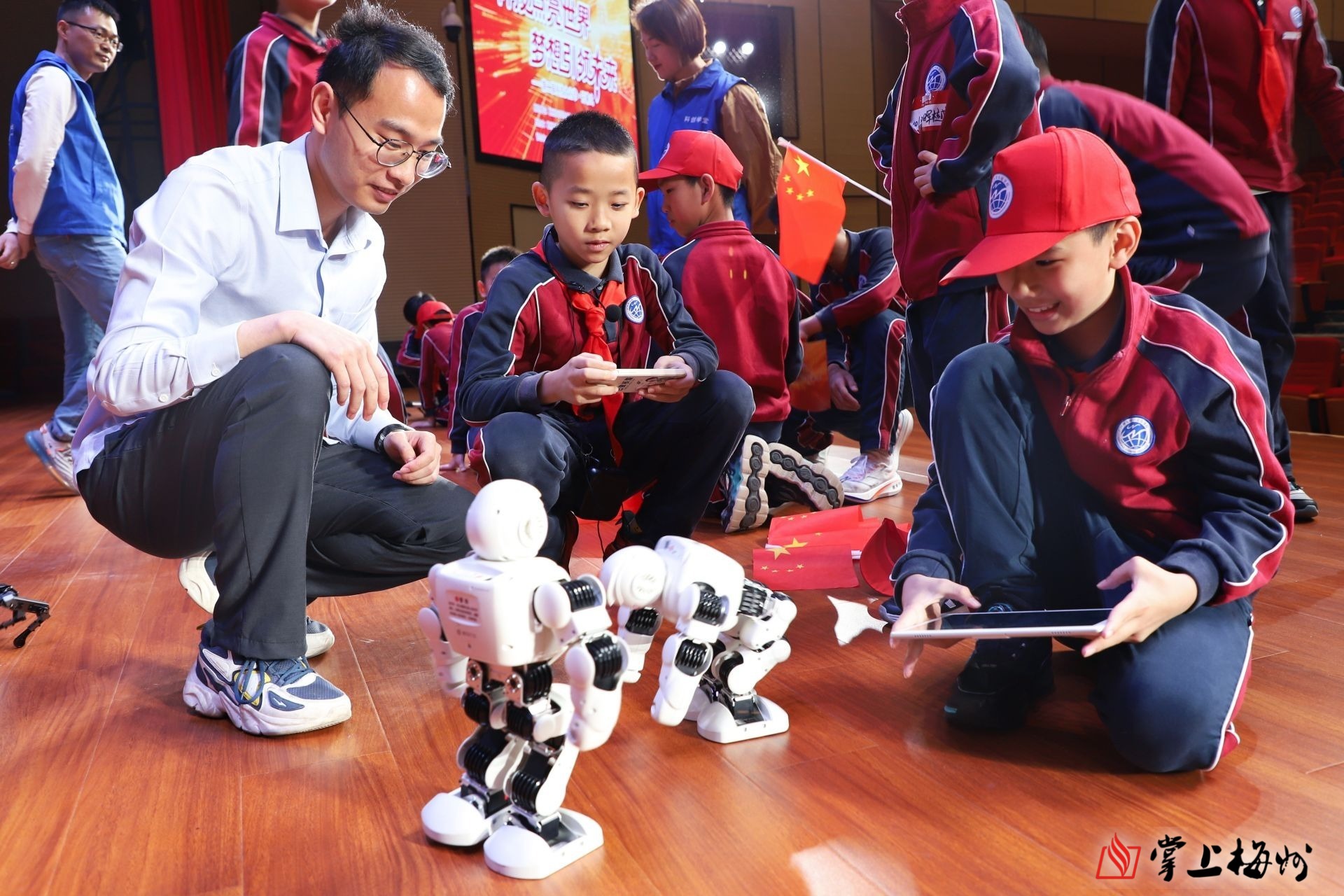 梅州市外语实验学校第二届科技文化节现场,学生在操控阿尔法机器人。(学校供图)