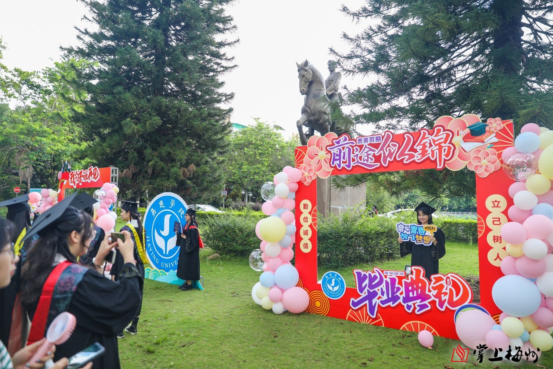 嘉应学院的毕业生们穿着学士服拍照留念。(吴腾江 摄)