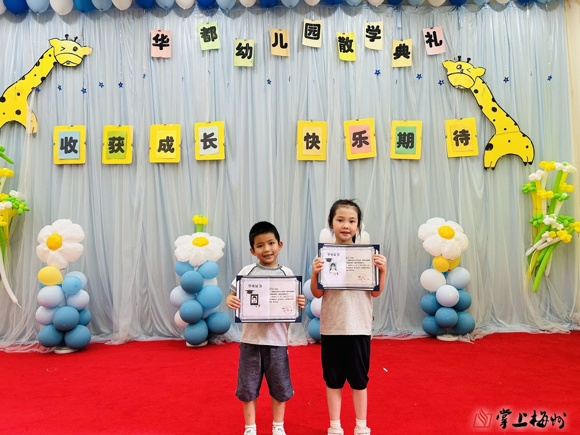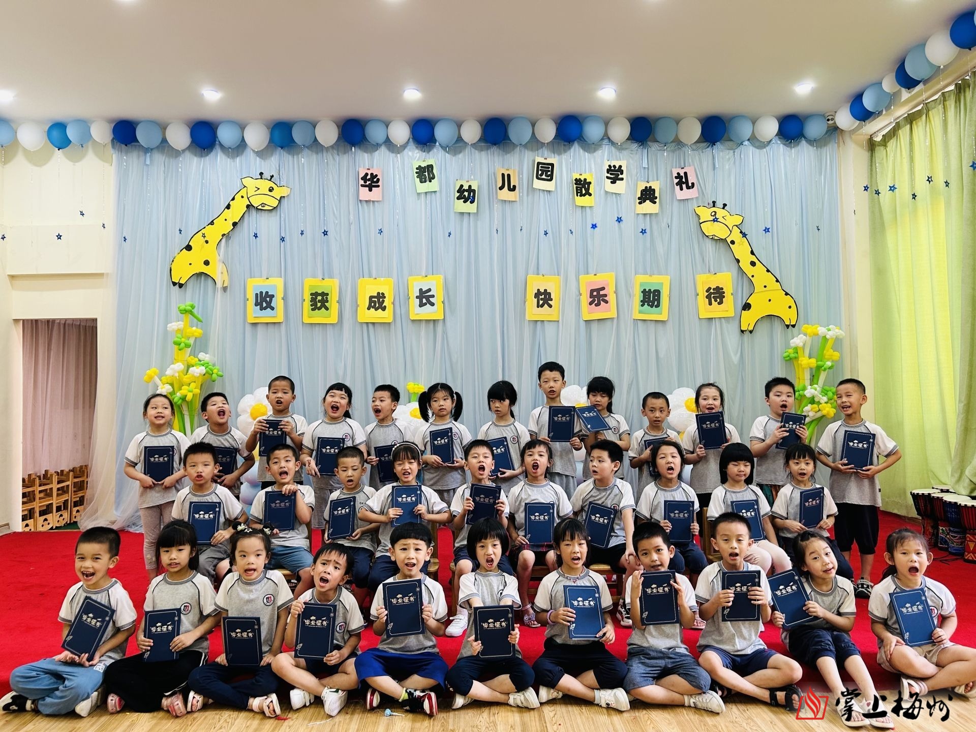 华都幼儿园大班的孩子们领取到人生第一张毕业证书。(学校供图)