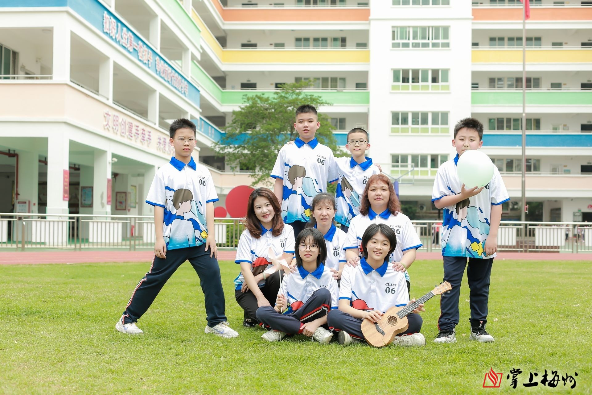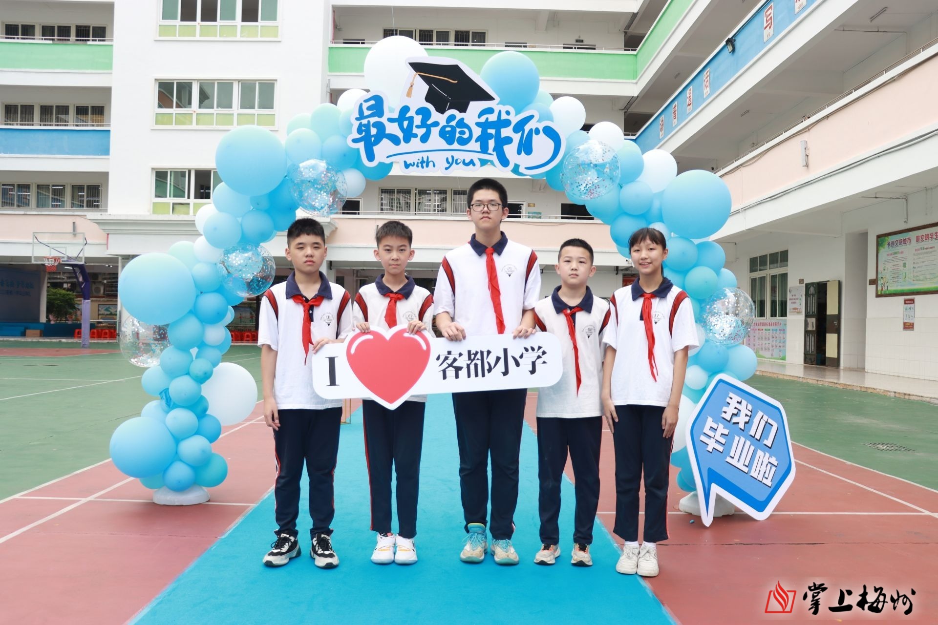 梅江区客都小学毕业班的学生在学校里合影留念。(学校供图)
