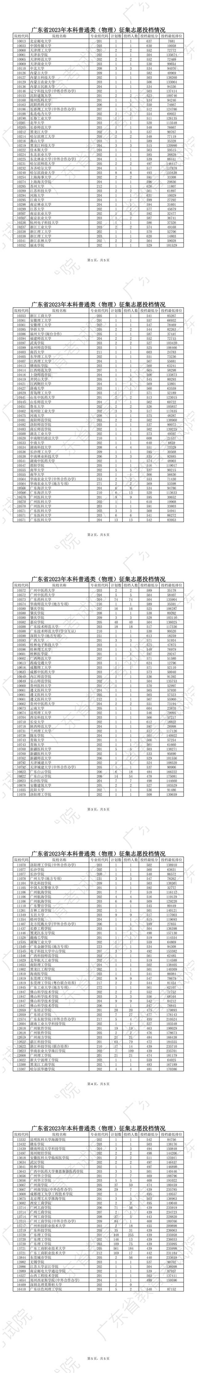 记者梳理发现,物理类华南师范大学(地方专项)最低投档分数589分,最低排位35591位,华南农业大学(中外合作办学)最低投档分数553分,最低排位71430位。