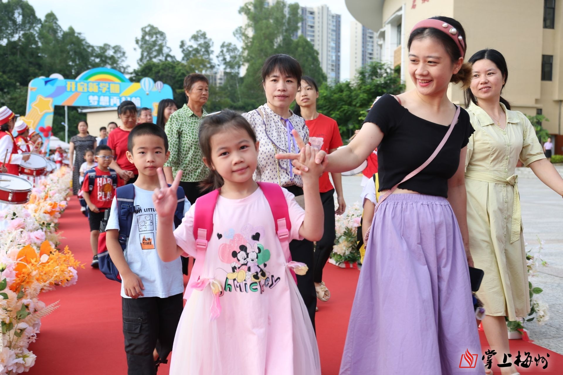 与此同时,在平远县城南小学的开学礼上,五颜六色的鲜花、鲜红的地毯、精美的拱门,红毯两边是英姿飒爽的少年仪仗队,他们穿着整齐的制服,等待迎接新生的到来。“步入新学期,我就是一名五年级的学生了,要比四年级成绩更好,上课也要更加认真听讲,不开小差,提高做作业的效率。”来自城南小学五年级的王李昕彤自豪地跟记者说。开学典礼上,孩子们穿着自己喜爱的漂亮衣服,跟父母手牵着手,走过红地毯,一步一个脚印进入校园。“小朋友刚来学校有点还没有适应过来,还是有点担心,相信她在老师的陪伴下会很快适应新的环境。”一年级学生凌佳棋的家长跟记者说道。