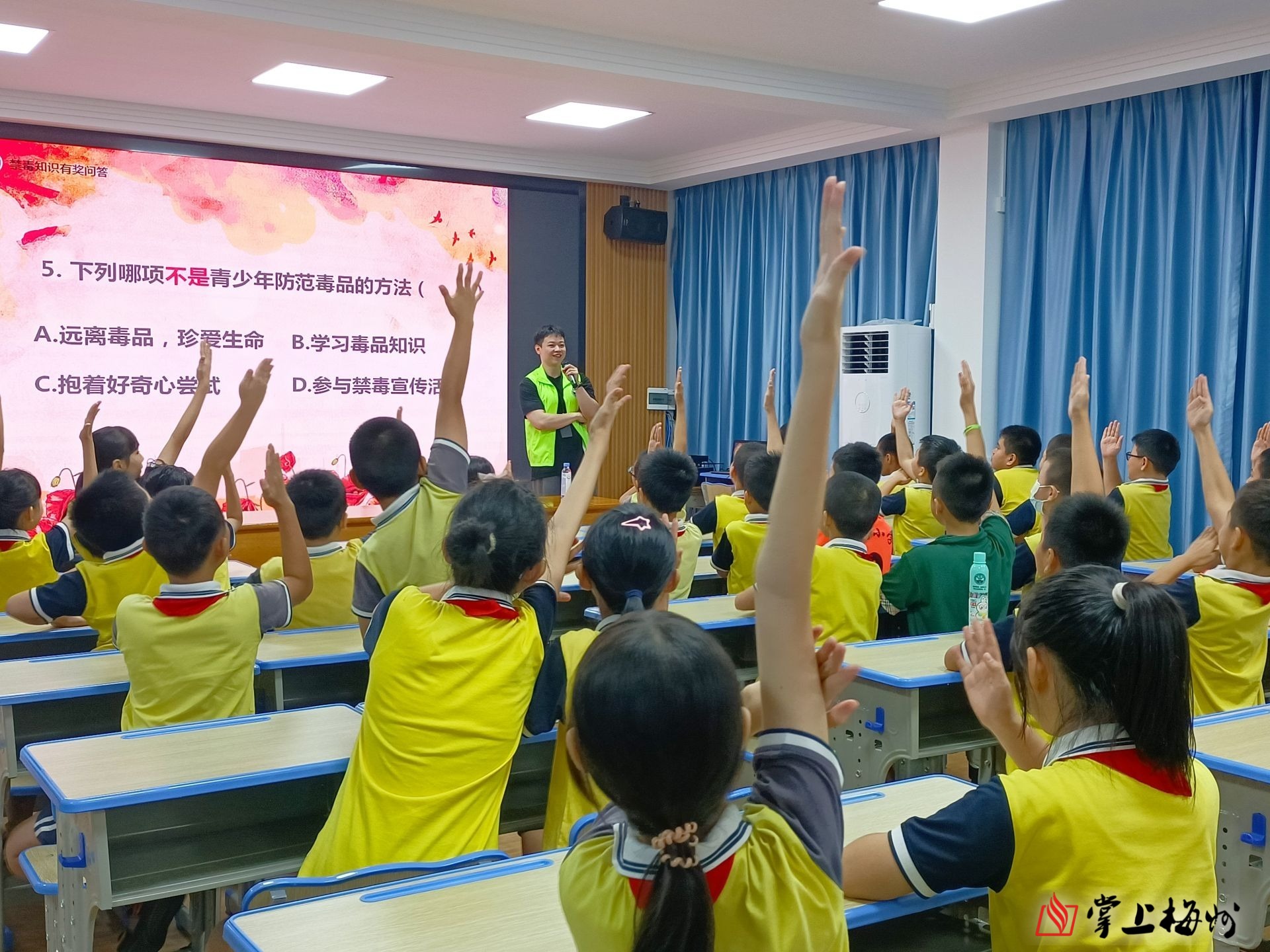 为进一步增强青少年识毒、防毒、拒毒的意识,全面做好青少年毒品预防教育工作,筑牢在校学生禁毒思想防线,打造平安无毒校园,9月15日下午,梅州市公安局梅江分局、梅江区禁毒办联合梅江区教育局在梅州市梅江区西街小学组织开展了“开学第一课”禁毒宣传进校园活动。