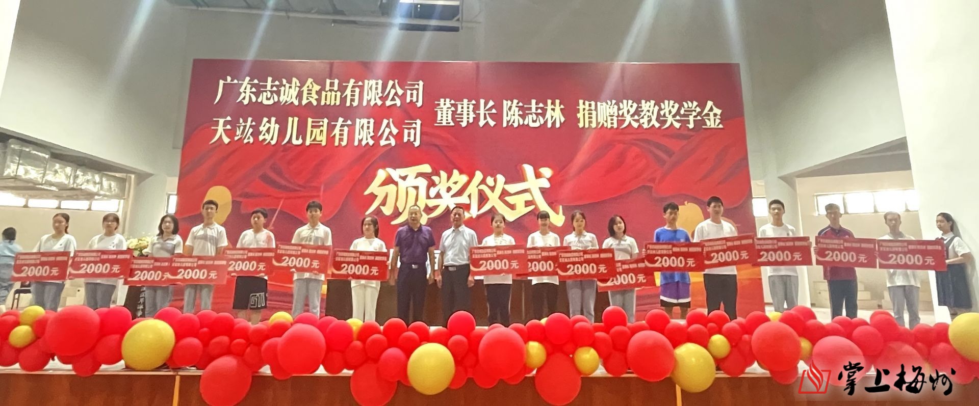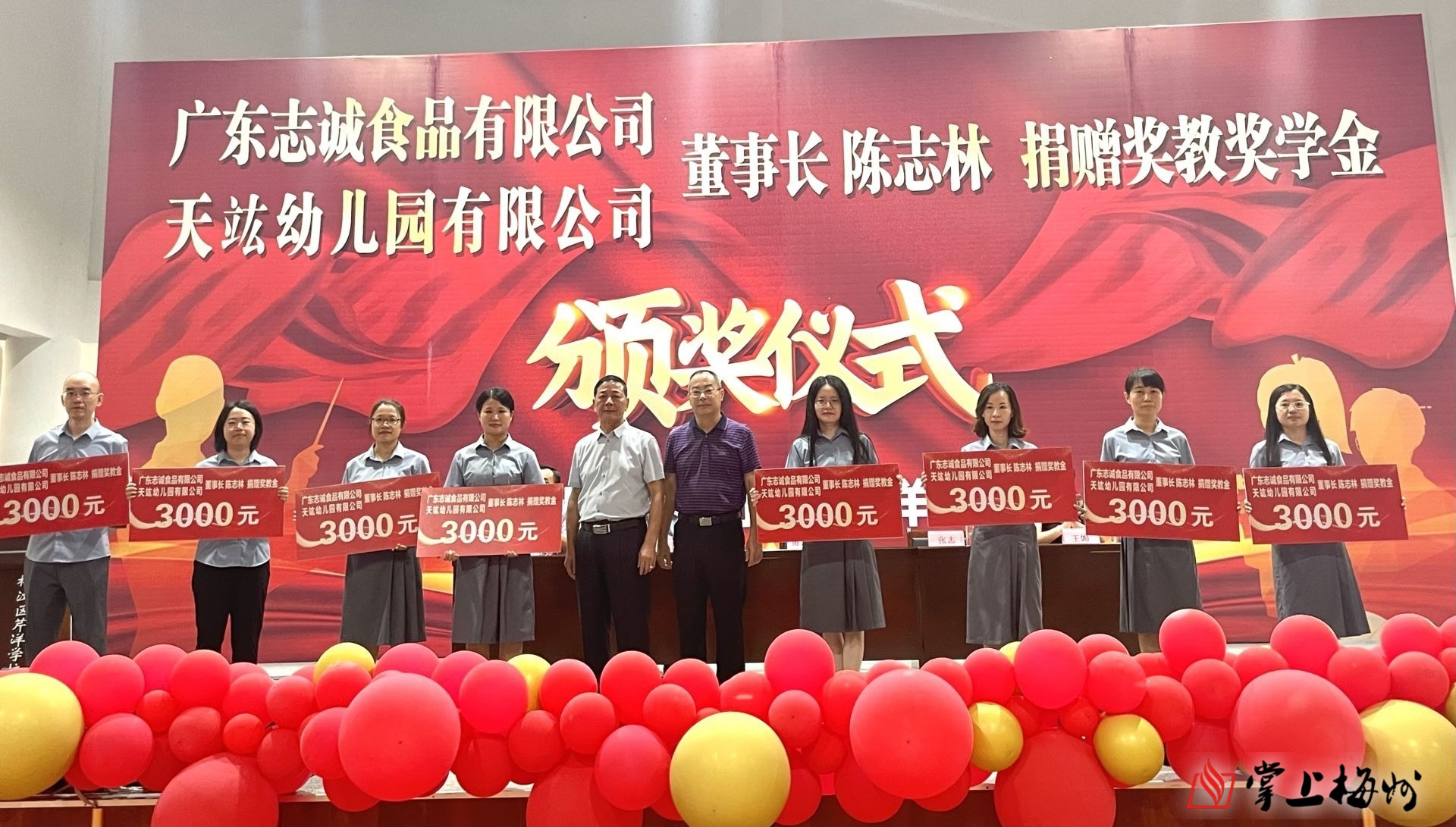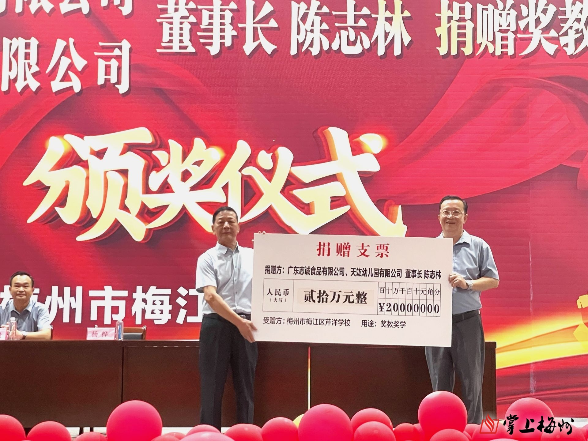 掌上梅州讯 9月22日上午,梅江区芹洋学校举行陈志林捐赠奖教奖学金颁奖仪式。活动中,广东志诚食品有限公司、天竑幼儿园有限公司董事长陈志林向芹洋学校捐赠20万元设立“中考奖教奖学金”,以鼓励教师们敬业爱岗,全面提高教育教学能力;鼓励学生们发奋学习、拼搏进取、全面发展。