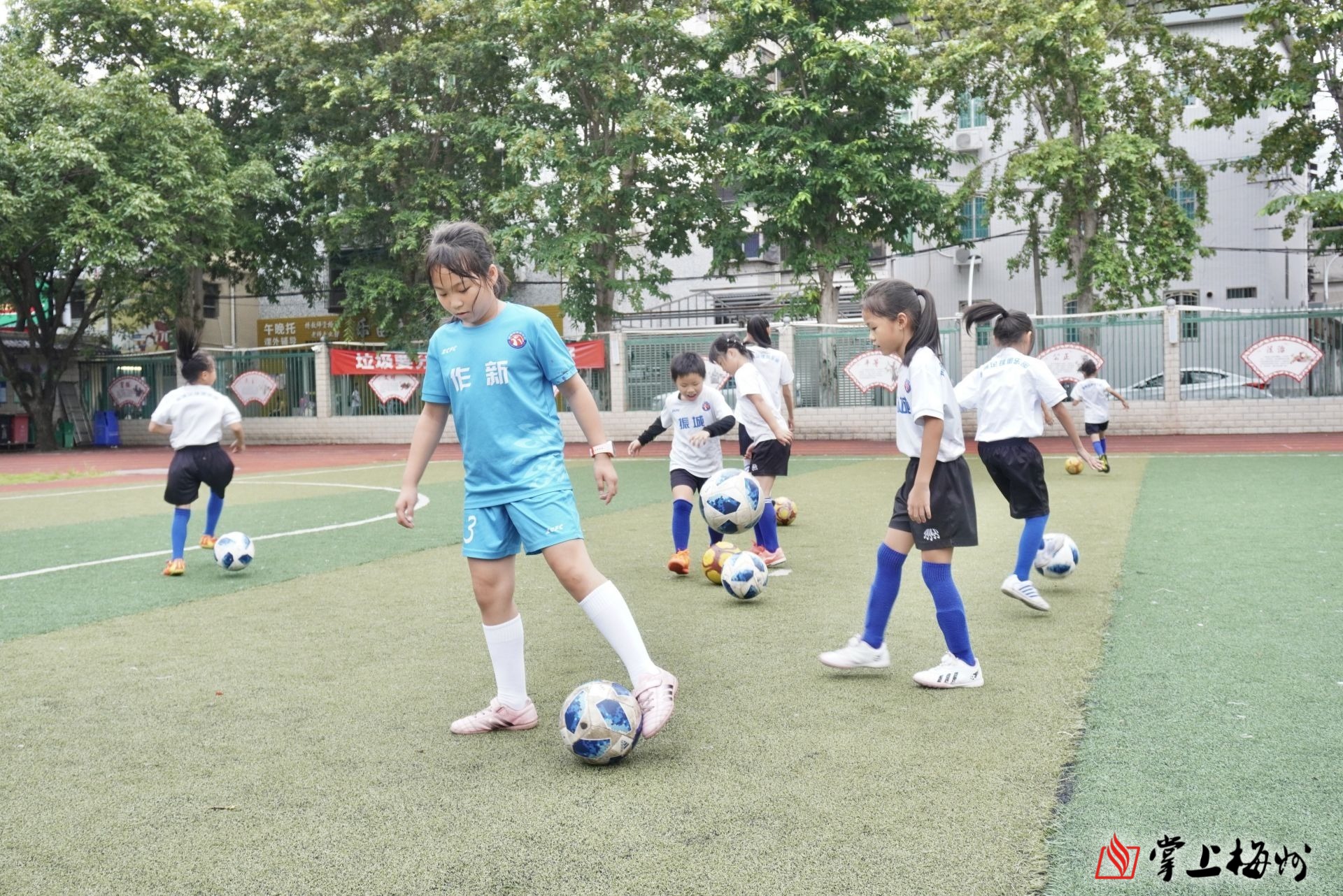 下午四时二十分许,轻松欢愉的下课铃声响起,作新小学校园足球队的队员们走出教室奔向操场,在体育老师的指导下,男女球员分成两组,人手一个足球,在练习颠球、传球等基本技法。这样的情景,几乎每天在该校上演,已成为学校一道靓丽的风景线。