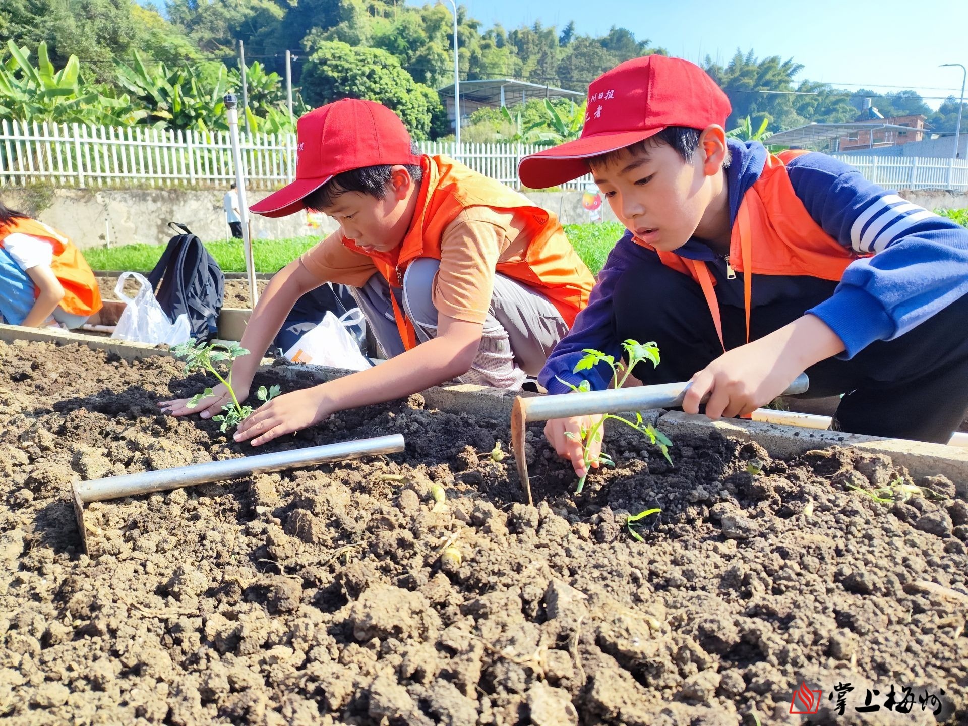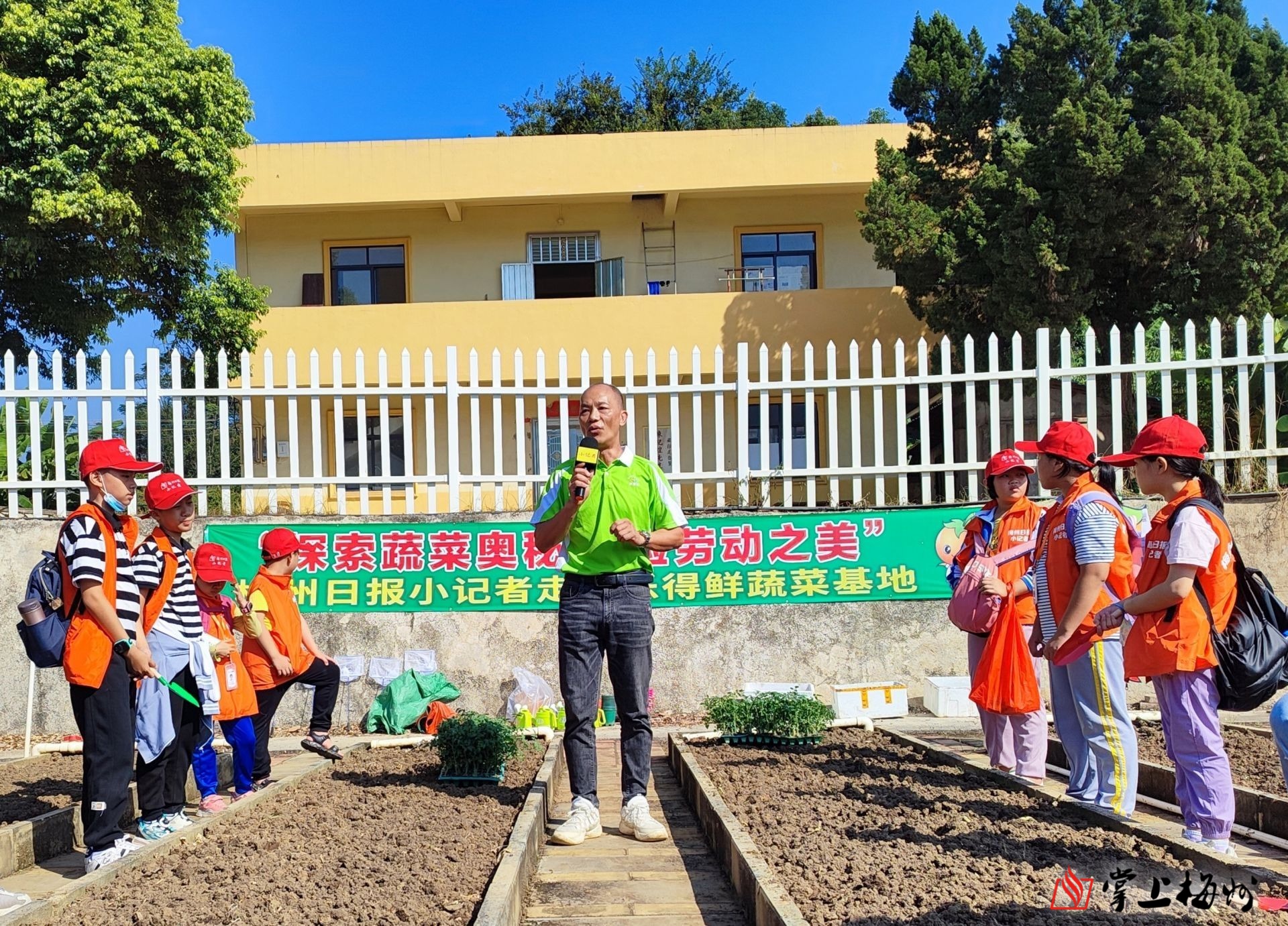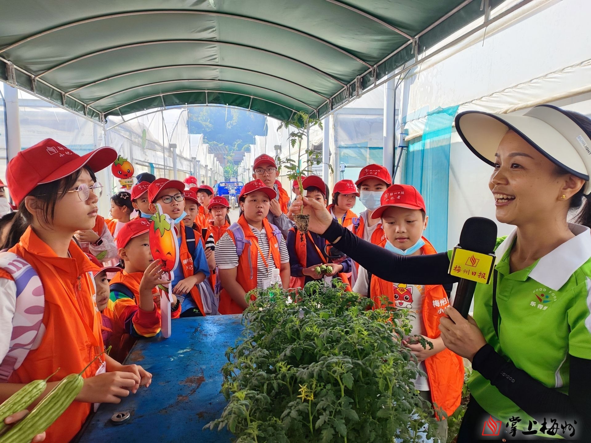 掌上梅州讯 11月5日,30多名梅州日报社小记者走进位于梅江区城北镇的乐得鲜蔬菜基地,开展“绿色蔬菜劳动记”研学活动,学习授花粉、种番茄、摘菜心、捡鸡蛋,体验劳动的乐趣。