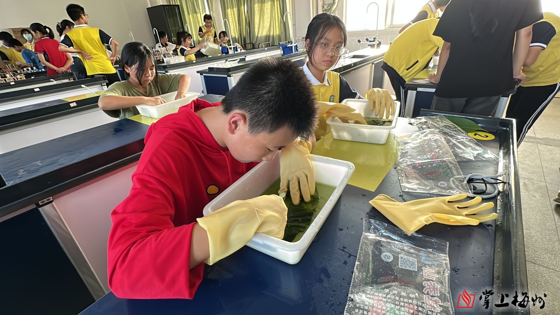 实验室里,学生在做叶脉书签。(廖玉芳 摄)