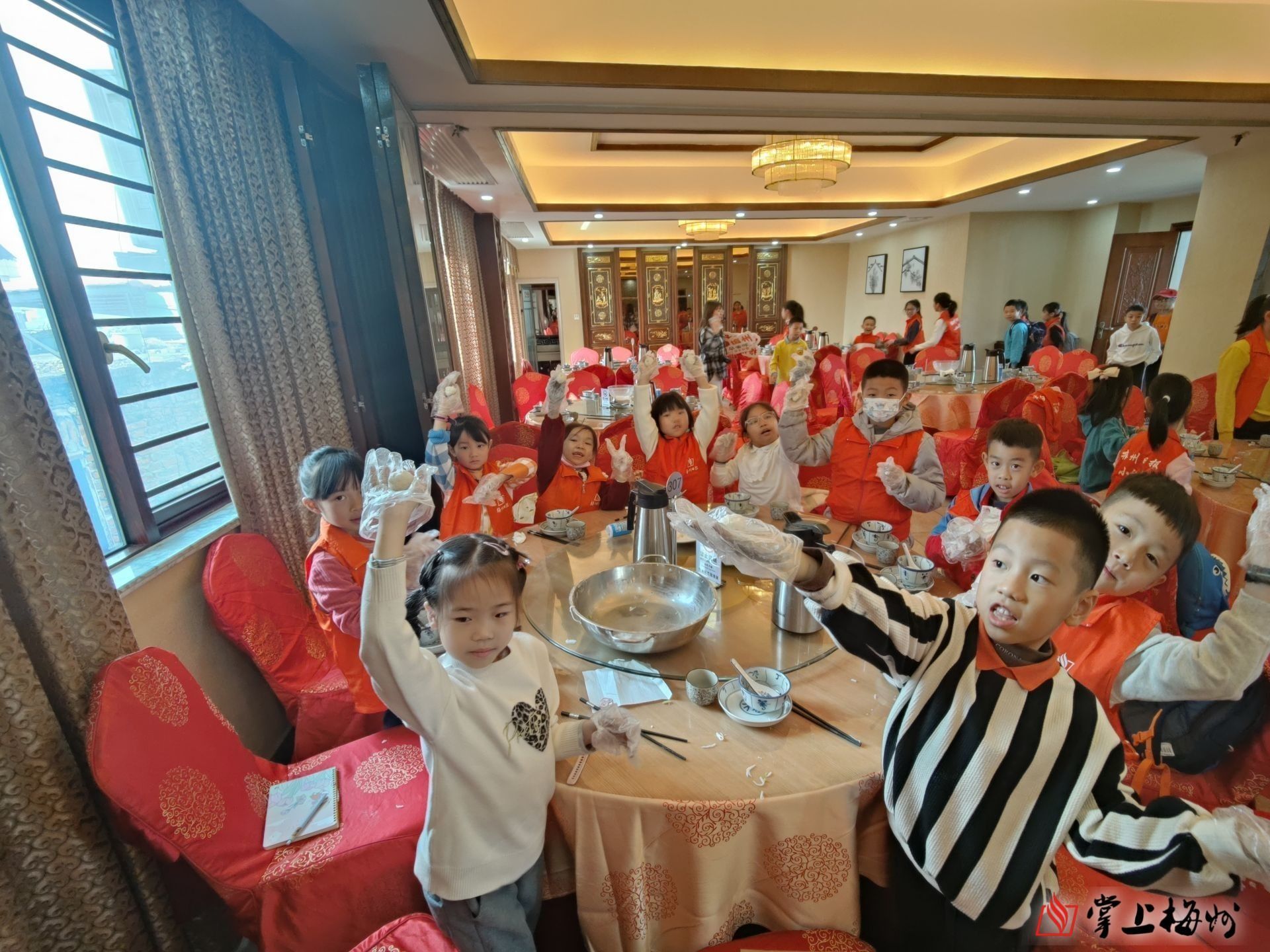 当天上午,梅州日报社特邀客家文化达人刘烨带领小记者们先后走进八角亭、学宫、红军名将朱云卿事迹陈列室、梅县商会旧址、大觉寺、短街口等地,围绕骑楼、围龙屋、独具梅州特色的装饰风格等进行多方位、多角度讲解,令参与活动的小记者对嘉应古城的建筑、老建筑的文化和历史,以及人物故事有了进一步了解。其间,小记者还走进围龙屋星园酒家,参观客家百年围龙屋——承德楼,在客家菜师傅的指导下,体验客家小吃的制作,品尝美味的传统客家菜。下午,小记者跟随梅州市植物土法染布项目非遗传承人李海燕体验植物土法染布技艺。