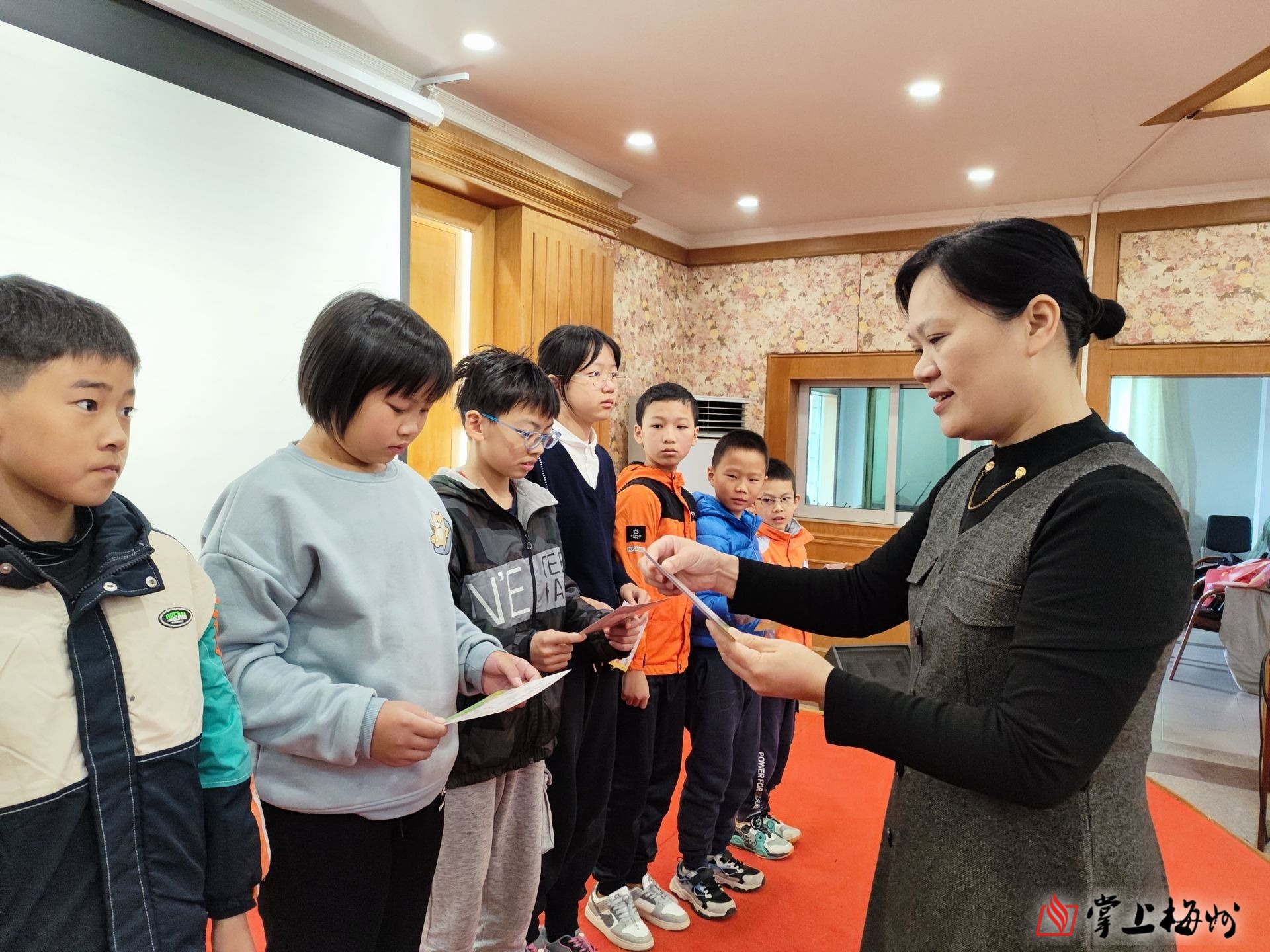 本次活动旨在帮助学生提高阅读和写作能力,培养良好的学习习惯。 在活动现场,梅州日报社教科文卫部主任、梅州日报《小记者》报主编廖爱玲结合多年的采编工作,分享了阅读写作的技巧, 为学生们提供了游记、人物描写、活动描写的写作方法。她鼓励学生们多读书、读好书,养成良好的阅读习惯,并通过写作锻炼自己的思维能力和表达能力。接着,现场为学生颁发稿件发表通知书,鼓励他们多创作。最后,梅州日报全媒体记者卜林飞还为学生们进行了一场以“诗词”为主题的写作辅导讲座,引导他们深入感悟诗词的魅力,激发他们的写作灵感。