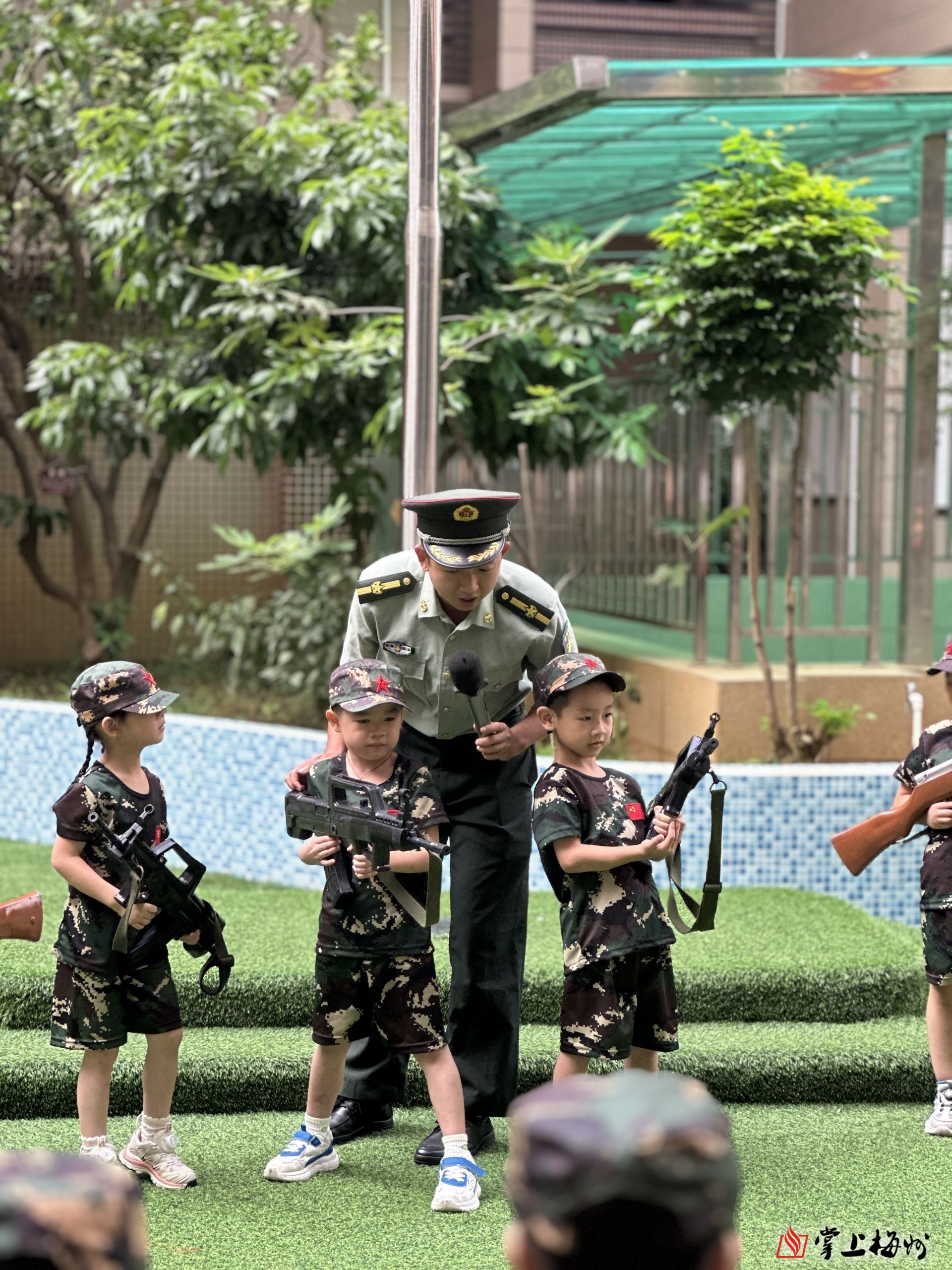 9月27日上午9时许,梅县区正本大地幼儿园举办了“爱我中华 强我国防 我是勇敢小小兵”国防教育活动。操场上聚集了身穿迷彩服的小朋友们,他们站着军姿,在教官的带领下进行升旗仪式, 奏唱国歌。随后,教官为在场的“小小兵”们讲解了轻武器知识,展示了旗语、拳术、匕首操、战术分队、擒敌拳等科目,赢得了大家的阵阵掌声。(黄宝珠)