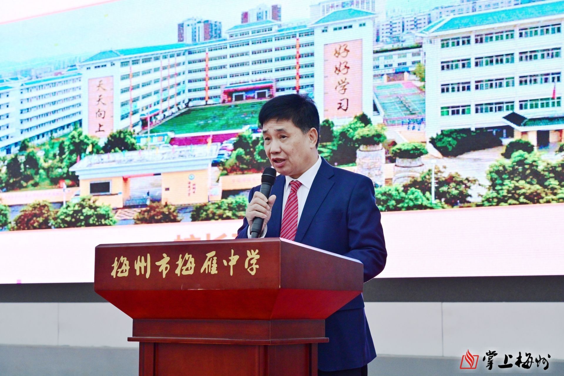 梅雁中学校长温志浩致辞。