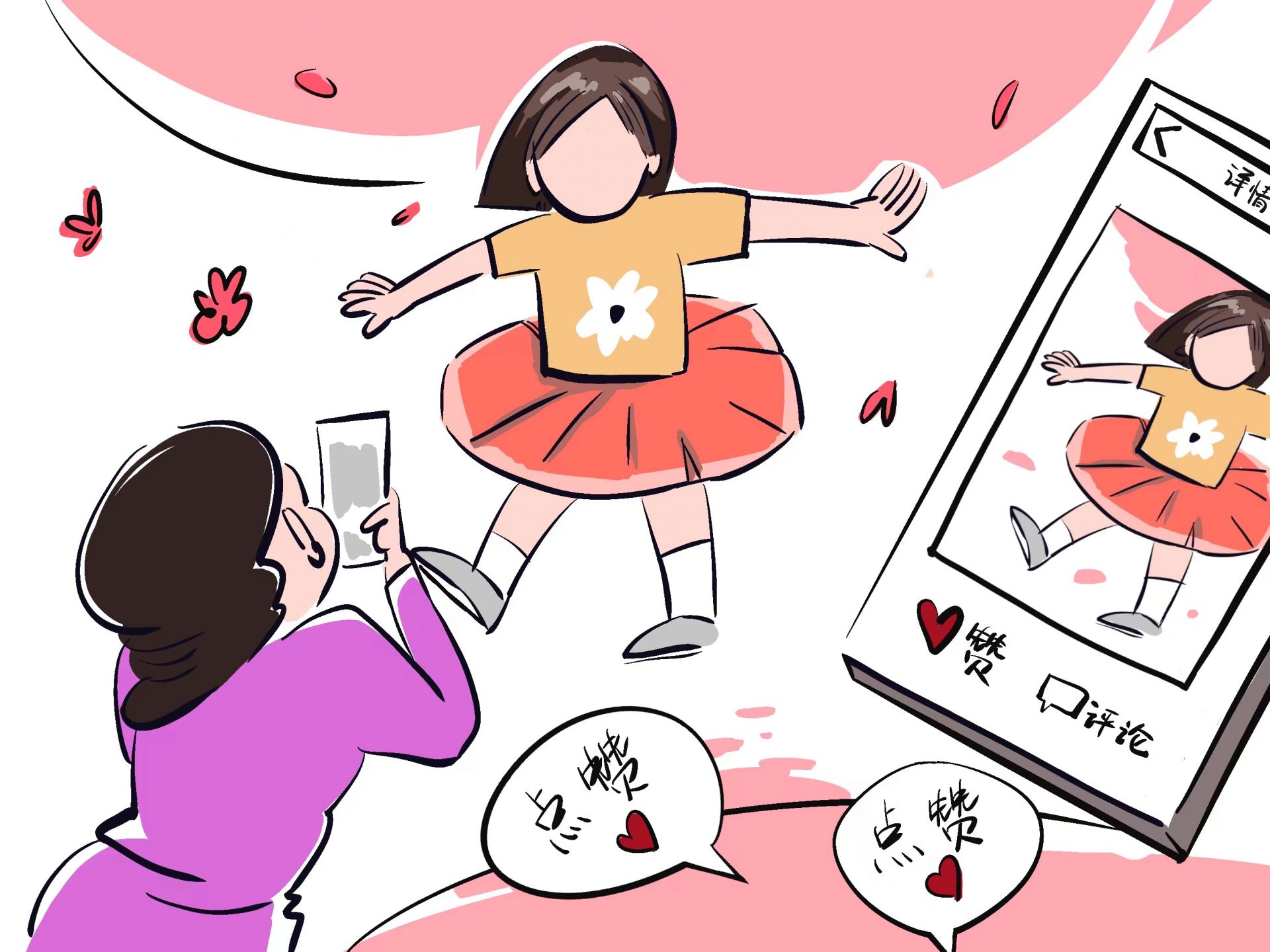 不少父母喜欢在社交平台上“晒娃”。(六六 绘)