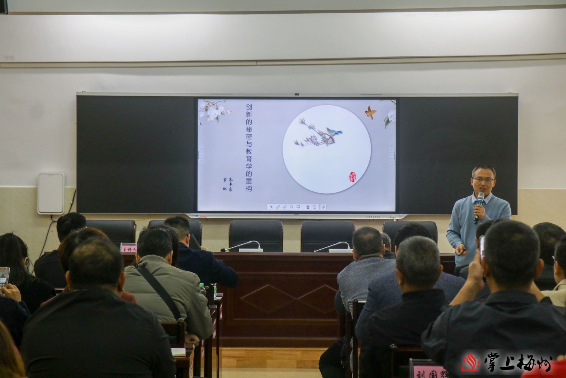 紧接着,朱丰良博士带来了专题讲座——《创新的秘密与教育学的重构》,他结合大量的教育实例与前沿研究成果,从创新规律、培养路径、成果探讨以及教育学重构四个维度进行了鞭辟入里的讲解,阐述如何在现有的教育体系中探寻创新的秘密,并以此为基石对教育学进行重新架构,让抽象的教育理念变得鲜活易懂。台下教师们个个聚精会神,被朱博士的深刻见解深深吸引。许多教师表示,此次讲座开拓了他们的教育视野,赋予了他们在今后教育工作中更多的思考方向与实践灵感。