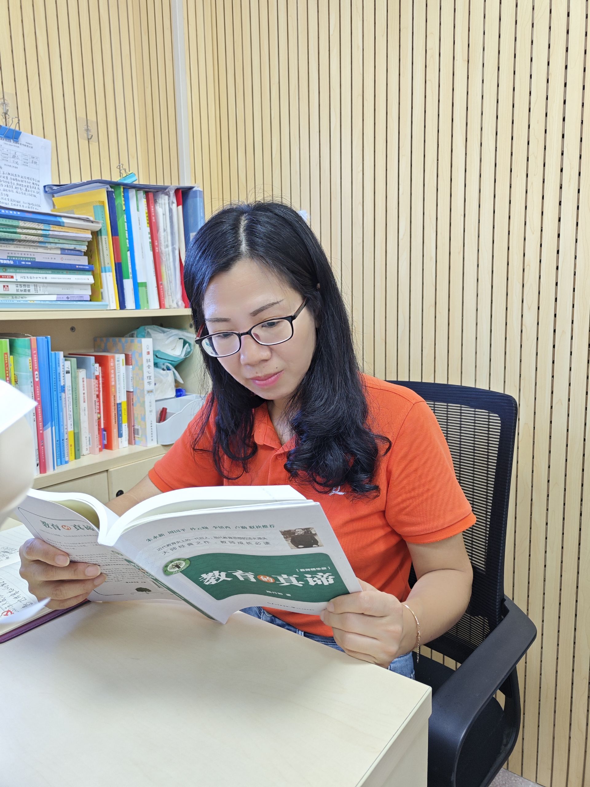 空闲时间陈跃芝也不忘阅读教育类书籍充实自己。(王锐 摄)