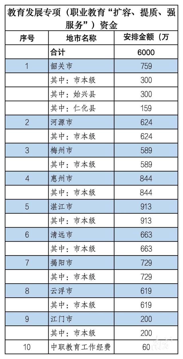 自2019年广东启动职业教育“扩容、提质、强服务”三年行动计划(2019-2021年)以来,每年都会在教育发展专项资金中安排资金,用于职业教育的“扩容、提质、强服务”,至今已是第6年。