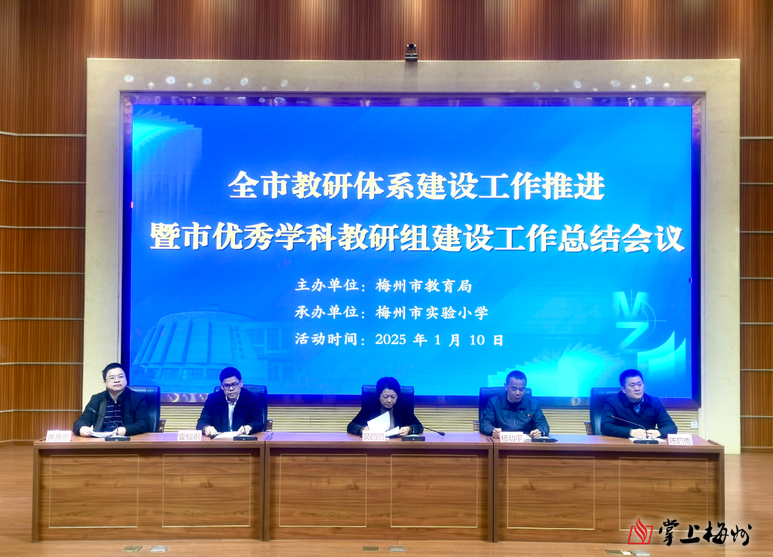 在肯定成绩的同时,吴丽丽剖析了我市教研工作面临的问题,如教研队伍配备尚显不足、专业水平仍需持续提升、体系建设亟须进一步完善等。为此,她提出了三方面的工作要求:一是要深化教研体系建设,构建以提升教育教学质量为核心目标、紧密围绕课程标准及教学改革要求的具有梅州特色的教研体系;二是要激活兼职教研力量,通过强化培训、搭建平台、推动创新等多元化举措,充分发挥兼职教研员的作用,形成专兼结合、梯队衔接、协同共进的良好局面;三是要激发校本教研活力,进一步完善评价体系,通过定期开展全市优秀学科教研组评选活动,树立先进典型,引领示范带动,促进学科教研组协同发展,为梅州教育高质量发展提供坚实支撑。