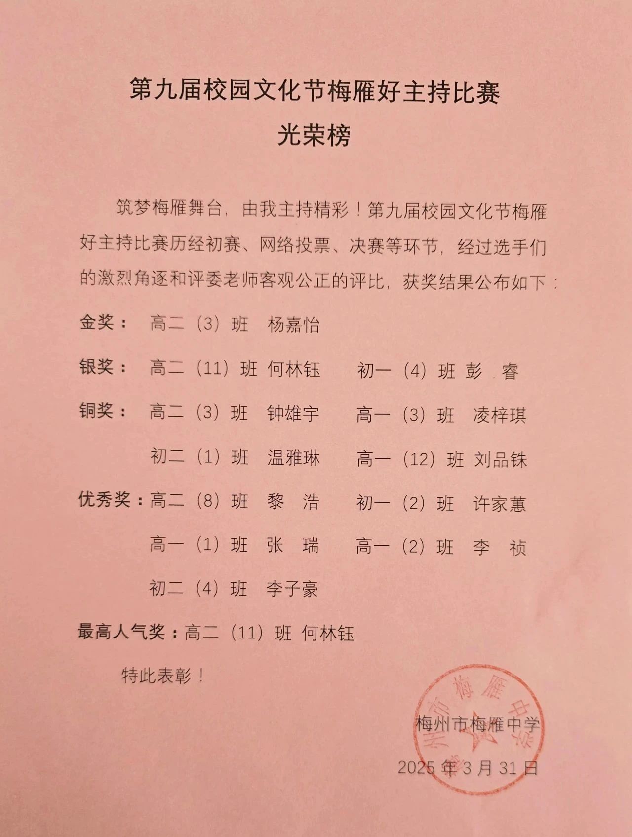 掌上梅州讯 3月28日,梅雁中学第九届校园文化节系列活动之一,梅雁好主持大赛在学校立心大礼堂隆重举行。