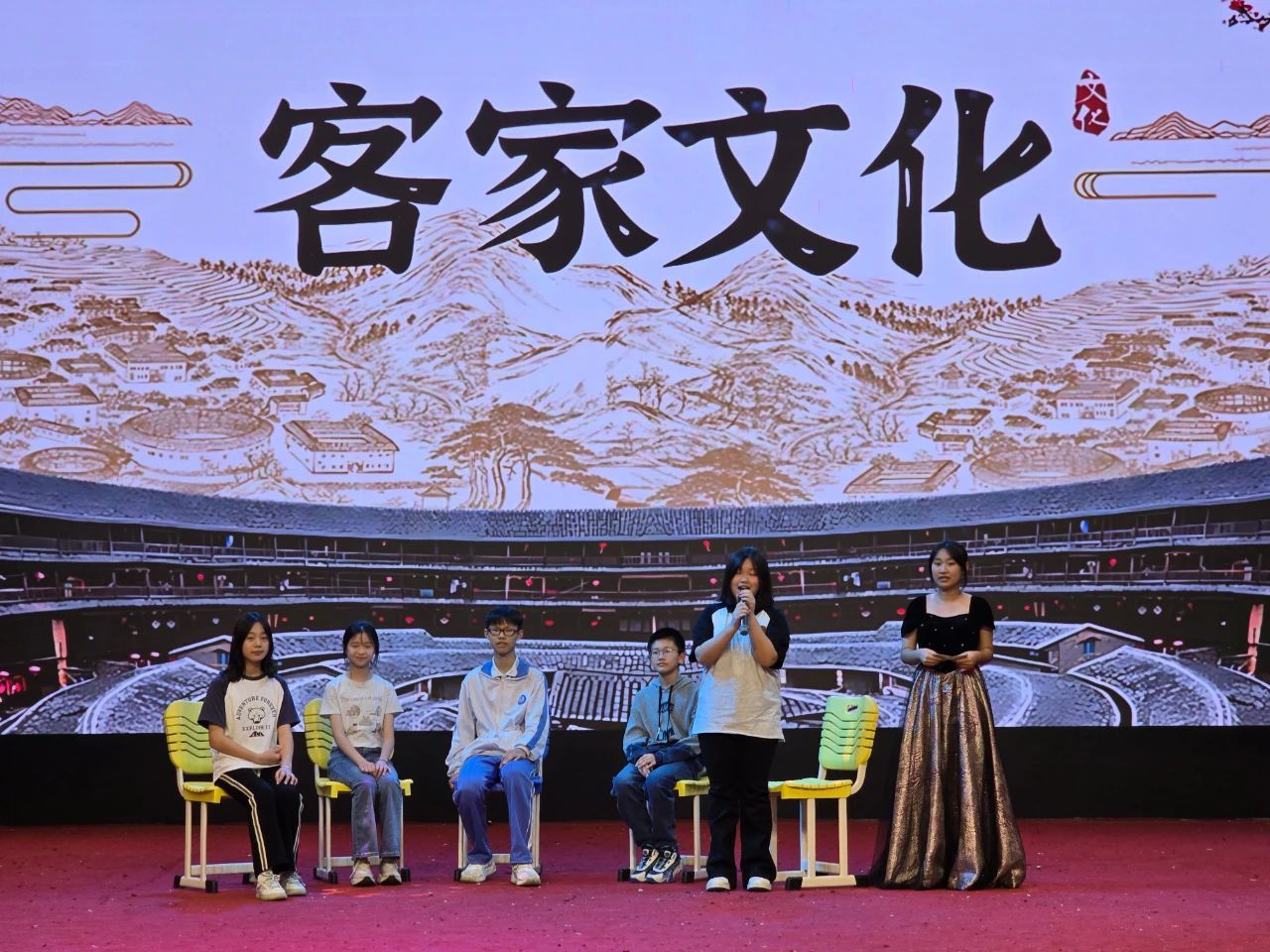 当高二(11)班何林钰的团队手执宋代建盏,在《茶文化分享会》中以茶筅搅动千年时光涟漪;当初一(4)班彭睿的团队用客家乡音唱响山歌,让围龙屋的炊烟在《印象客家》中化作乡愁的思绪——我们看见文化的基因正在少年血脉中苏醒。而高一(3)班凌梓琪的《感动中国》,让中医药文化与现代科研的化学仪器穿透荧幕,更令人惊叹的是高二(3)班杨嘉怡的《天气早知道》,用剧本演绎暴风骤雨,用手语传递日暖风轻。这不是简单的技艺展演,而是"爱生活"的深层觉醒:当传统成为青春的语言,文化的江河便有了奔涌向未来的源流。那些在《人类知识大探索》中积累的星辰大海,终须落回大地,成为滋养生命的养分。