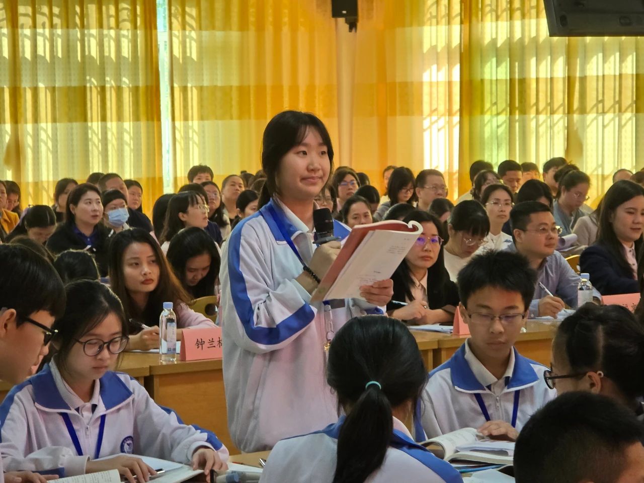 “教育不是独行,而是众行致远。”活动伊始,梅雁中学校长王茂盛以校园的“宁静”理念为引,道出教育者的初心。这座以“以师为魂、以生为本、以合作为舟”为教育理念的校园,致力以开放包容的姿态,搭建校际协同的桥梁。王校长提到,近年来学校践行精细管理、高质轻负、分层教学、多元评价,努力让课堂从“知识的容器”转向“问题的熔炉”,希望以此次大教研活动为契机,以资源共享突破改革的“深水区”,让示范课堂成为区域教育均衡的“助推器”。
