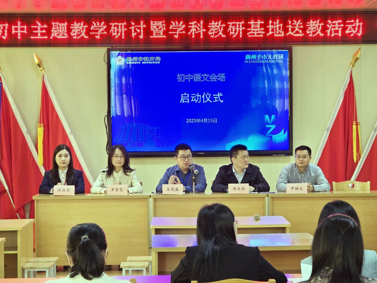 掌上梅州讯 4月15日,以“基于国家中小学智慧教育平台初中语文双师课堂教学探索”为主题的全市初中语文主题教研活动在梅雁中学启幕。来自市直、梅江区、梅县区的两百四十余名教育工作者齐聚一堂,“智慧”引航,合作为舟,共探语文教育提质增效的新航道。