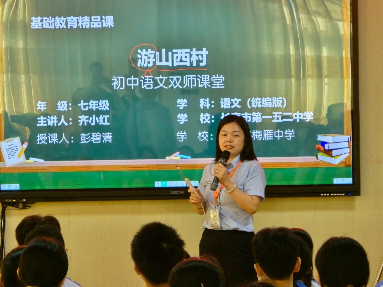 在活动的核心环节——高质课堂展示课上,梅雁中学彭碧清老师执教的《游山西村》,如同一场诗意的破茧。依托国家智慧教育平台,彭老师以“线上名师导学+线下教师引思”的双师模式,将陆游笔下的山水田园化为可触可感的画卷。