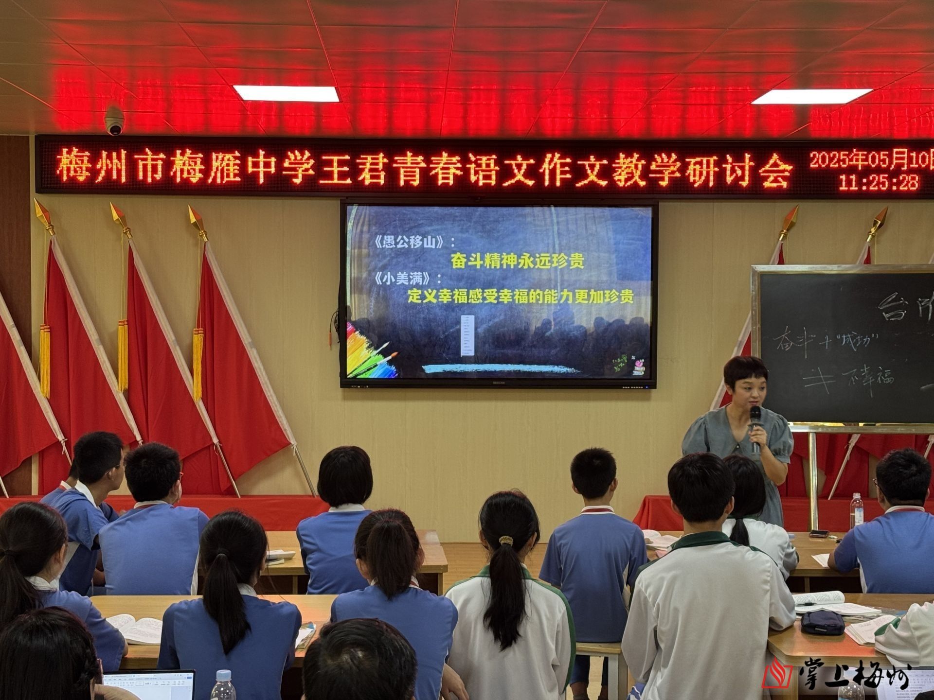 掌上梅州讯 5月10日上午,梅州市梅雁中学举行王君青春语文作文教学专题研讨会,邀请清华大学附中语文特级教师、青春语文研究者王君老师团队分享教学经验,通过“示范课+微讲座+交流研讨”模式,为初中语文教师搭建专业成长平台,吸引了我市及外省市共236位教师参加线下学习,通过线上直播吸引4.2万人次在线观课。