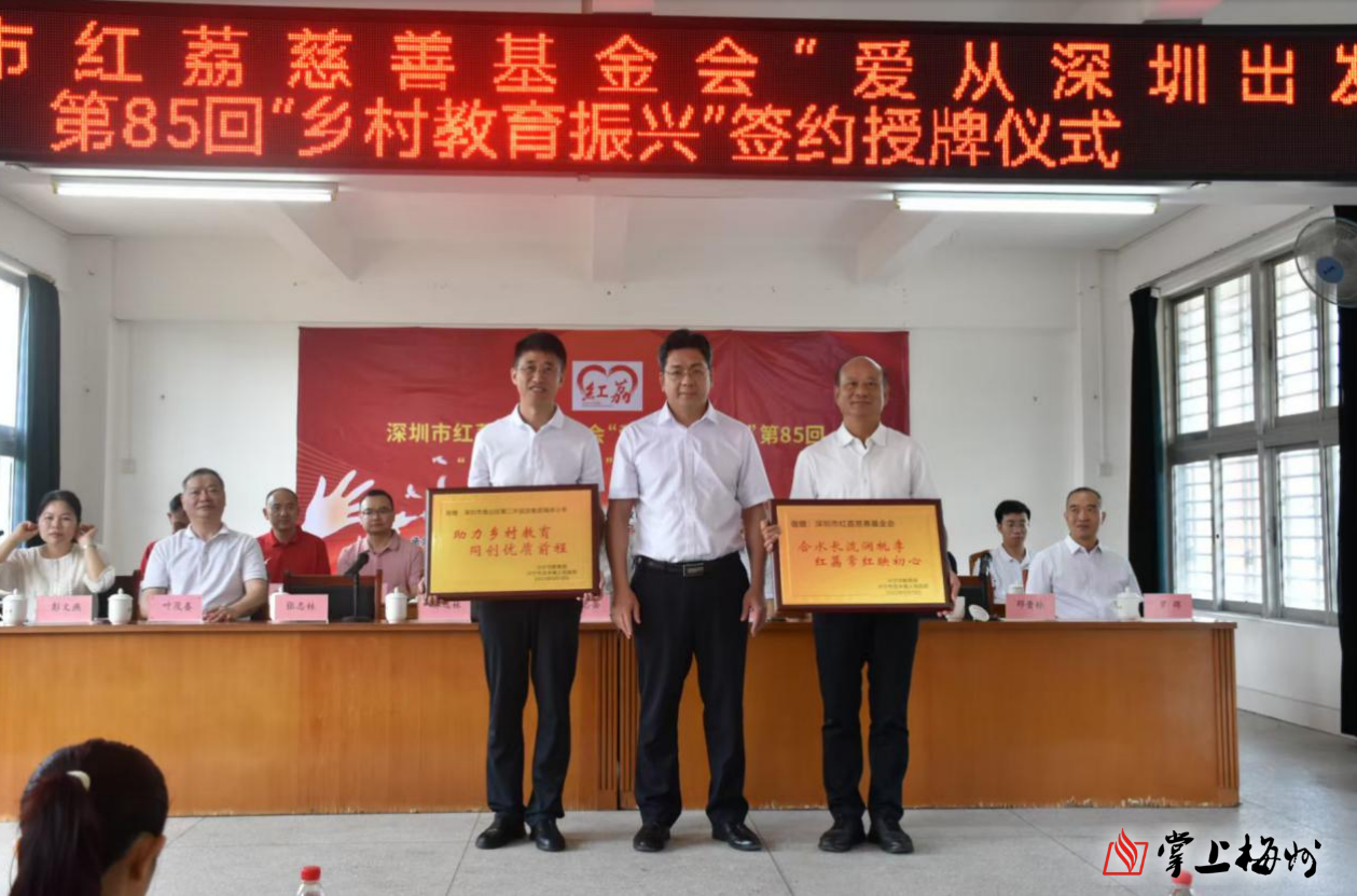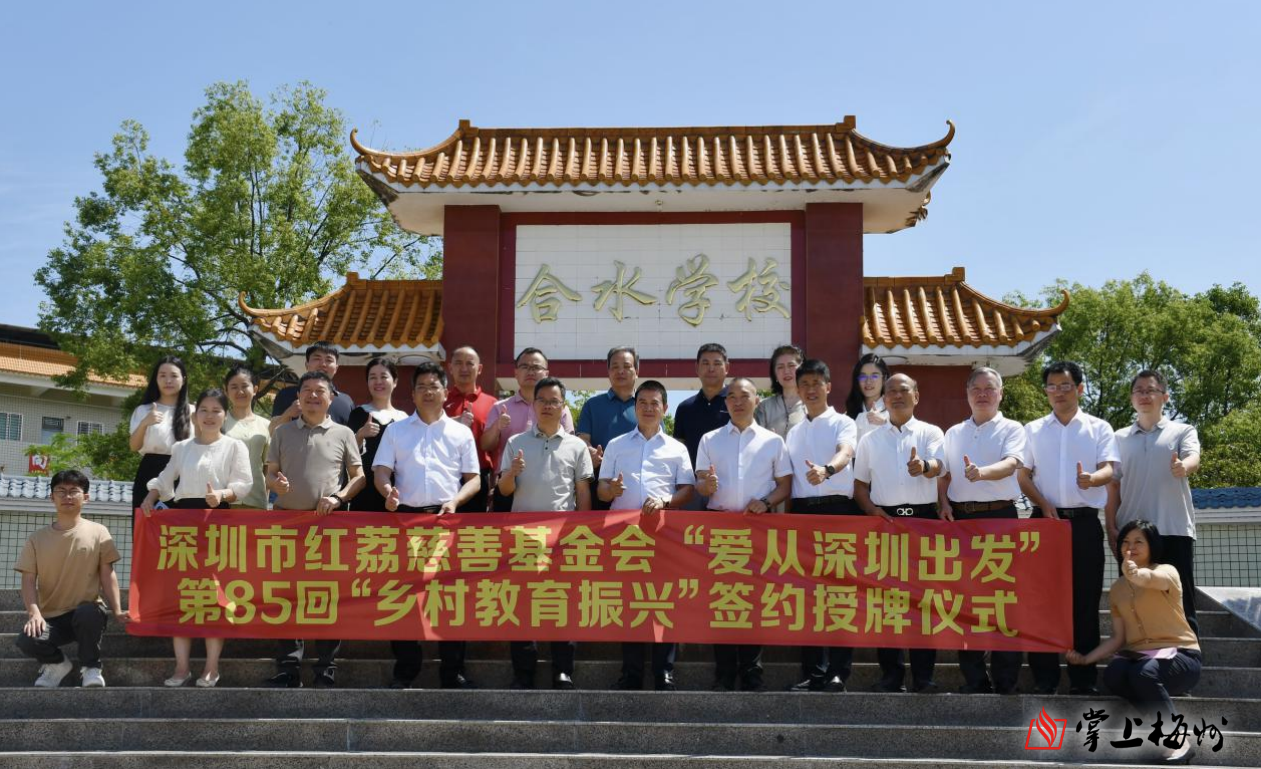 5月10日,由兴宁市教育局、兴宁市合水镇人民政府指导,深圳市红荔慈善基金会、广东省小学教育专业委员会、兴宁市教师发展中心主办,深圳市南山区第二外国语集团海岸小学、兴宁市合水学校、兴宁市龙北中心小学协办的“爱从深圳出发”第 85 回——“乡村教育振兴”签约授牌活动在兴宁市合水学校举行。