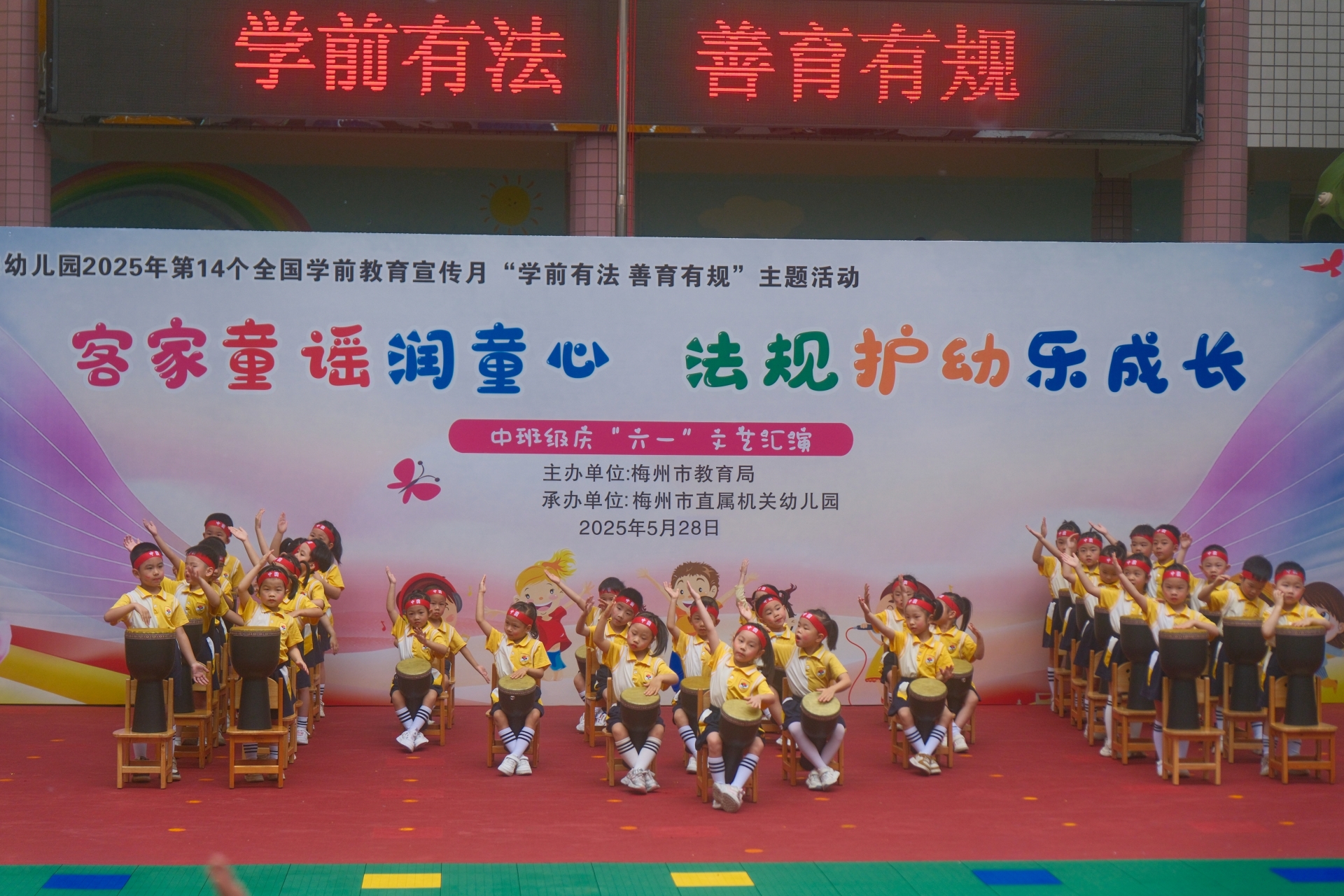 据了解,本次文艺汇演活动的表演剧目除了围绕幼儿园活动主题“客家童谣润童心 法规护幼乐成长”,还结合了第14个全国学前教育宣传月主题“学前有法 善育有规”、爱党爱国爱家乡等活动主题,创编了各类客家童歌谣、红歌表演唱等。“今年6月1日起,《中华人民共和国学前教育法》将正式施行,学前教育进入‘有专门法可依’的新阶段。我们幼儿园在积极传承和弘扬客家文化的同时,通过文艺汇演的形式宣传《学前教育法》,增强幼儿、家长及教师对《学前教育法》的认识与理解,确保每一位孩子都能在法律的保障下,享受到高质量、公平、安全的学前教育,促进幼儿全面发展。” 张红园长道。