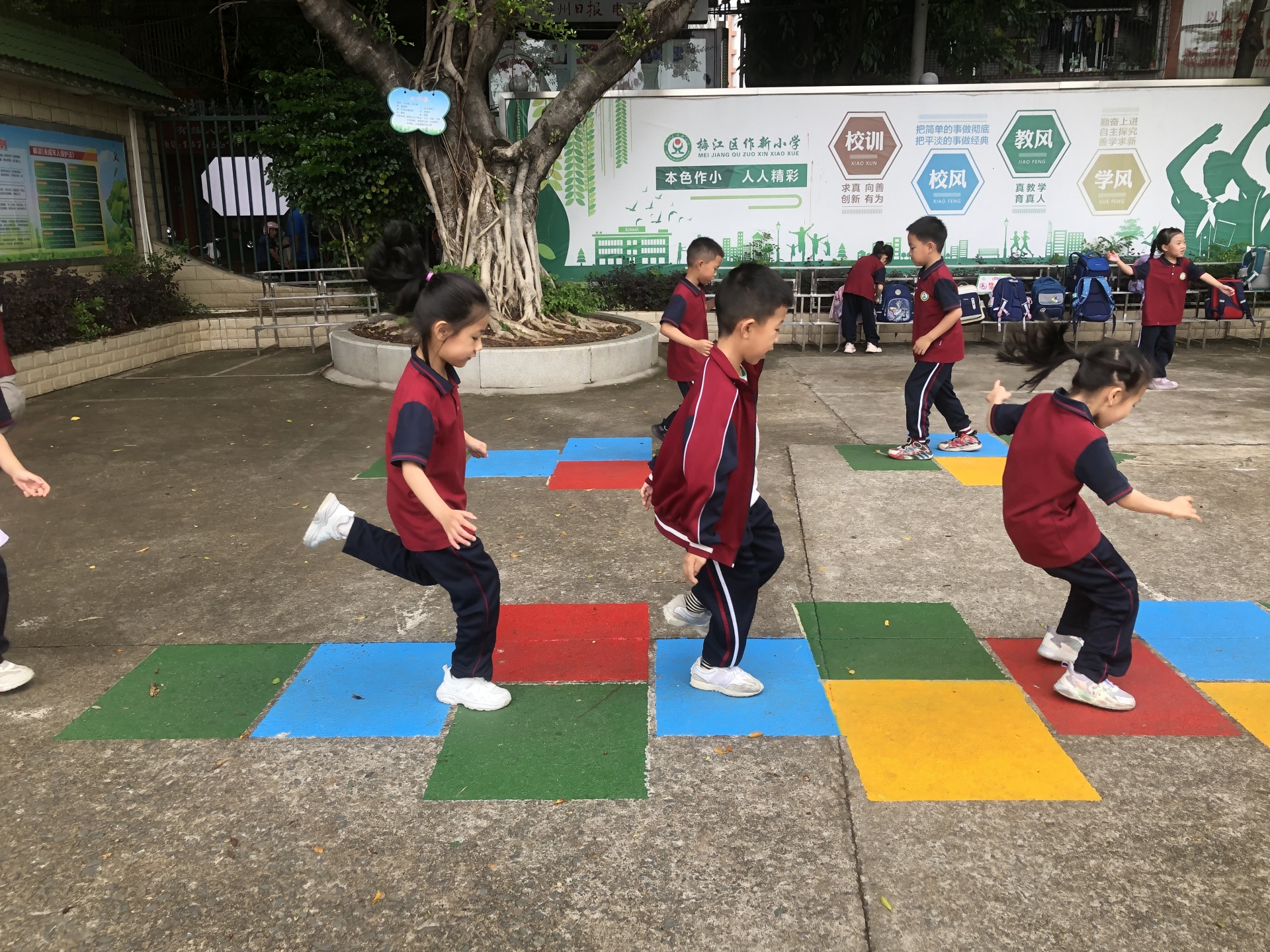 一提起“跳格子”,肯定会勾起很多人的童年回忆。近日,作新小学再现这种传统游戏,只见校园的空地上画了不少彩色的格子,同学们可随时随地进行锻炼。这种运动既能放松身心,又能培养学生动作的灵敏性,还能加强团结合作。瞧,孩子们在“跳格子”游戏中大显身手,时而单脚站立,时而双脚轻快交替,在跳跃、奔跑、嬉笑中,尽享童年的欢乐!