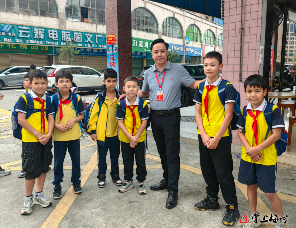 早上7时25分,凉风阵阵,梅江区人民小学门口却暖意融融。一名维吾尔族家长骑着电动车送孩子到校,刚停稳车,只见该校党总支书记朱庆锋迎上来,帮小朋友把滑到肩头的书包带理好:“虽然你才刚转学过来没多久,但老师们都跟我说你适应能力很强,课堂上很积极,今天继续加油呀!”简单的互动里满是亲切——这样的温暖瞬间,正是这所学校积极做好民族团结工作的日常缩影。