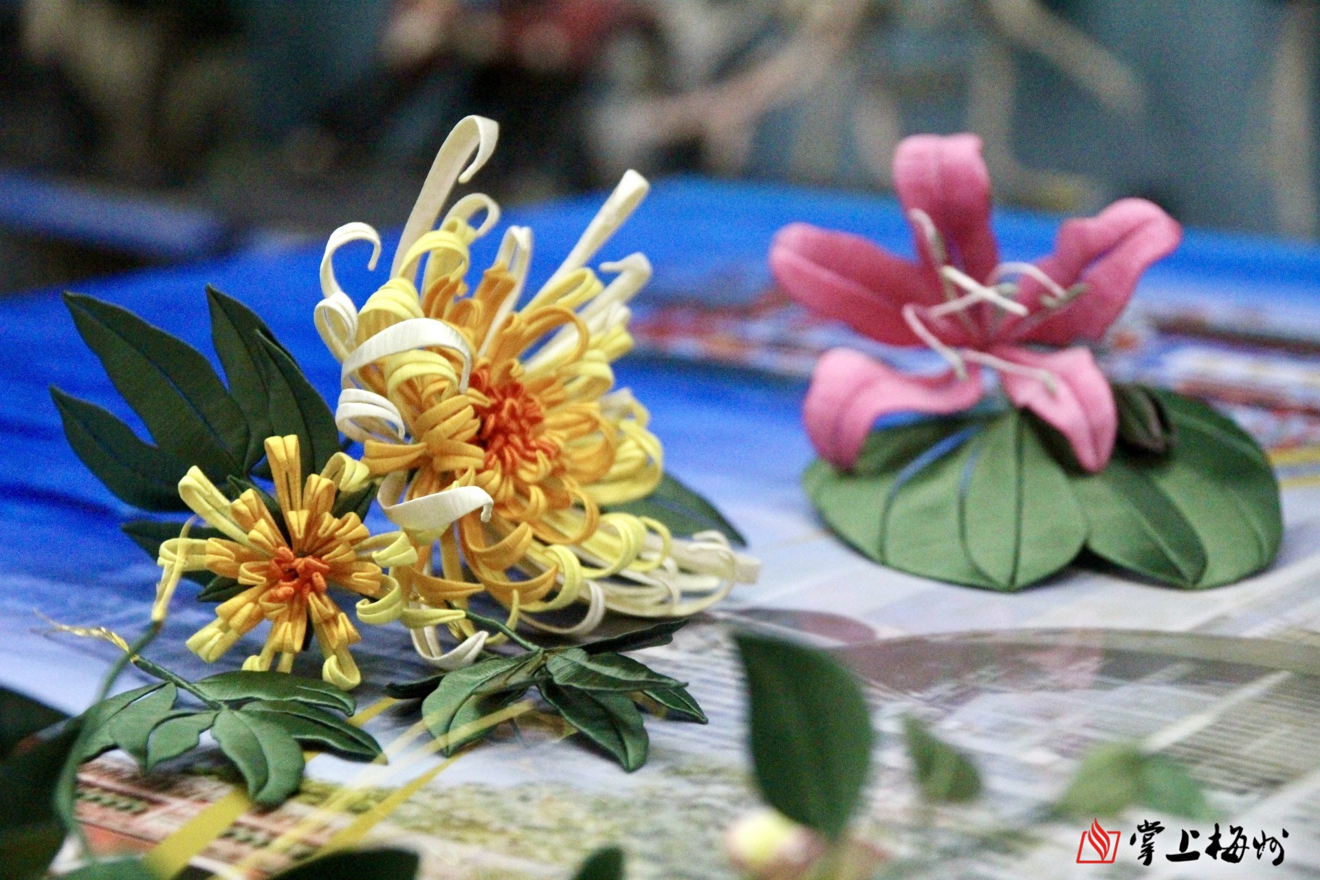 此后多年,廖静翻遍旧物、走访长辈,一点点复原客家缠花技艺。“外婆今年100岁了,现在还能给我提建议。”廖静笑着说,每次带新作品给外婆看,外婆都会用沙哑的声音提醒:“这里的弧度要再弯一点,像真花那样才好看。”