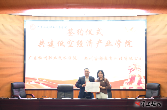 校企签约环节成为大会亮点。学校先后与广东凯利智能交通技术有限公司、梅州圣戈班汽车玻璃系统有限公司进行合作签约,分别与梅州市清凉村苏记祥种养农民专业合作社、广东客沪服务管理有限公司、梅州客都教育科技有限公司共建“梅州茶产业学院”“电子商务产业学院”“低空经济产业学院”。此次签约精准对接梅州特色农业、现代服务业与新兴产业布局,践行了梅职院“专业建在产业链上”的发展理念。