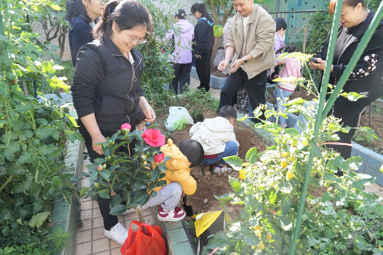在活动中,老师带领小朋友们认识了要种植的树苗,然后家长与小朋友携手合作,挖坑、扶苗、填土、浇水,亲手种下属于自己的小树苗。每一组家庭还精心制作了专属的植物标识牌,这不仅是一次简单的植树体验,更是一场充满爱的亲子陪伴,一堂生动有趣的自然教育课。家长与孩子用双手创造绿意,用爱心守护自然,并肩感受劳动的乐趣、成长的美好,让绿色的种子在孩子心中生根发芽,让爱护环境的理念成为家庭共同的信念,这是本次公益活动最珍贵的意义。