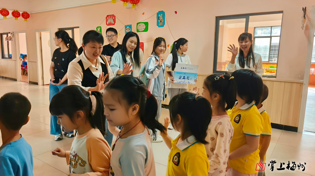 掌上梅州讯 3月31日,梅州市职业技术学校艺术教育部幼儿保育专业师生走进兴宁市新圩镇小博士幼儿园,开展乡村幼儿教育精准帮扶助教活动。驻镇帮镇扶村工作队、新圩镇乡村振兴人才驿站相关人员共同参与。