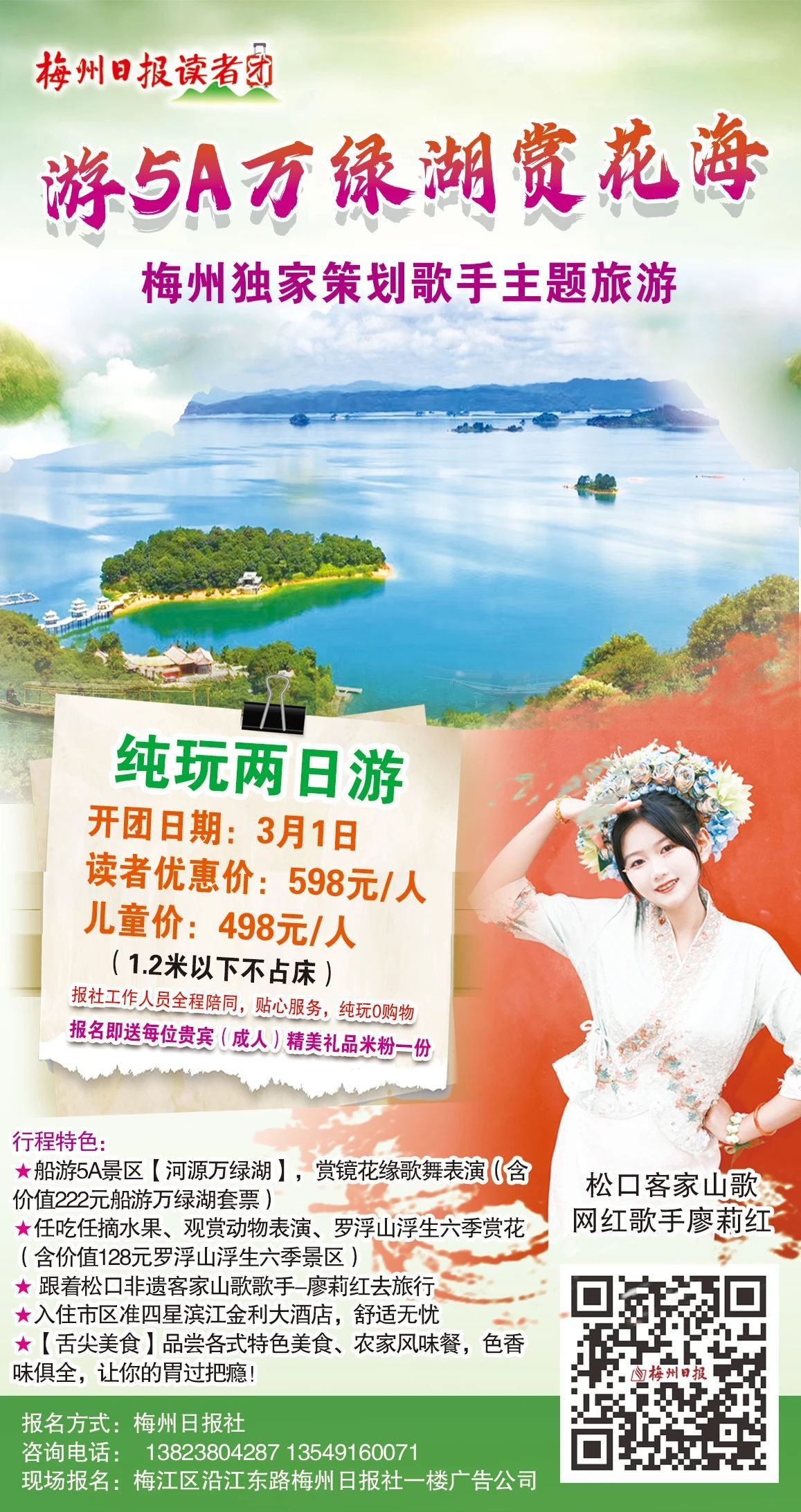 路线:梅州-惠州博罗县-浮生六季景区-午餐-游花海-任吃任摘水果-动物表演-入住酒店-晚餐-太平古街-喷泉