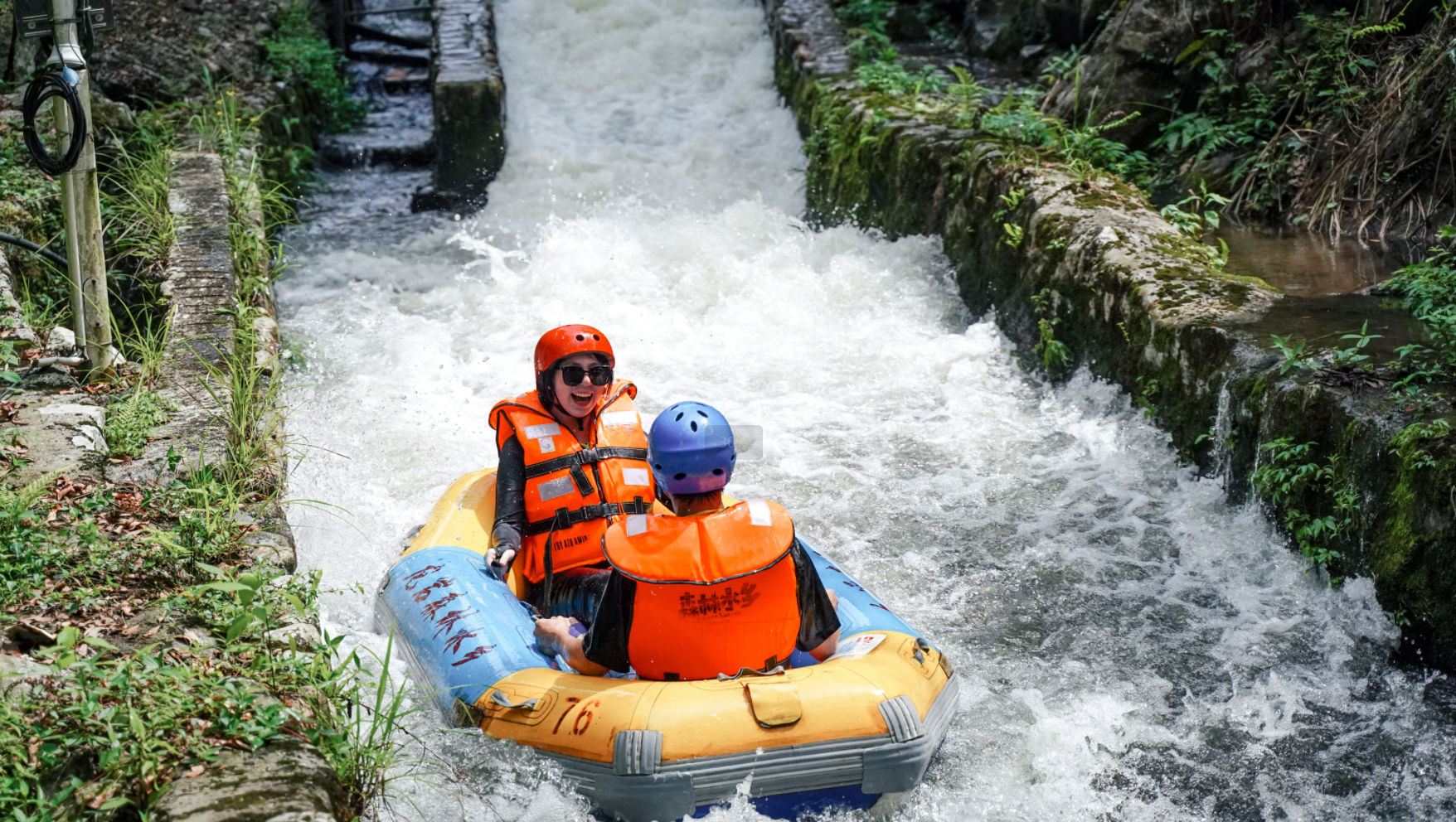 ★九溪庐森林漂流:垂直落差320米,河道高达98%被原始森林树木覆盖,水源无任何污染,河道水最深不超过1米;