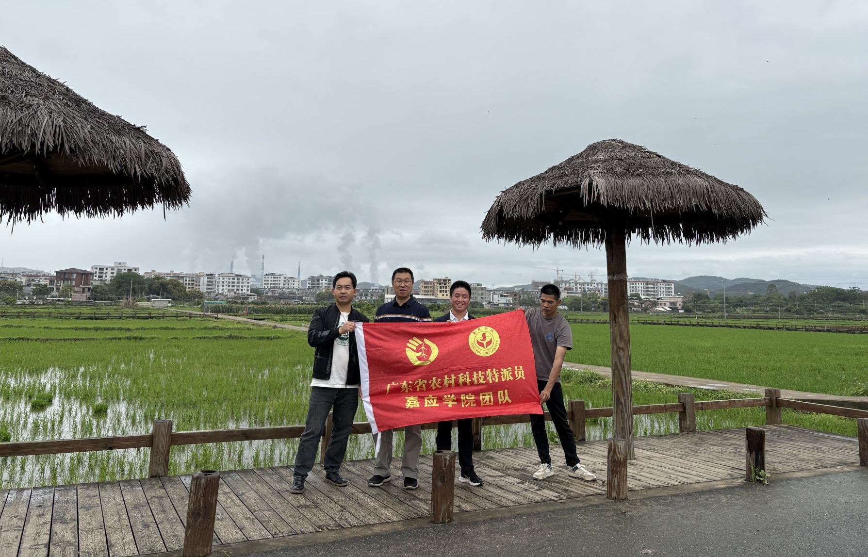 随后,考察团一行深入丙村镇另一片500余亩的农业科技示范展示基地。青香优19香丝苗米优质稻随风泛起绿浪。梅州鑫梅源农林公司技术总监指向田间的气象与虫情监测站介绍:这套物联网智能监测系统可实时显示气象数据、捕捉虫情、墒情数据,结合无人机飞防作业,农药使用量减少30%,稻鱼共生模式更让亩均增收500元。田埂上延伸的木质休闲观光栈道,栈道间观景台错落分布,栈道转角处的“禾下乘凉”休息区等设置正悄然编织着“农田变景区”的蓝图。此外,基地负责人还讲述着当初推进“小田并大田”时,带着测绘仪挨家挨户算好“三本账”——土地增值账、务工增收账、生态红利账;并与镇村干部组成“田埂调解组”,通过屋场会化解农民的疑虑成功经验。