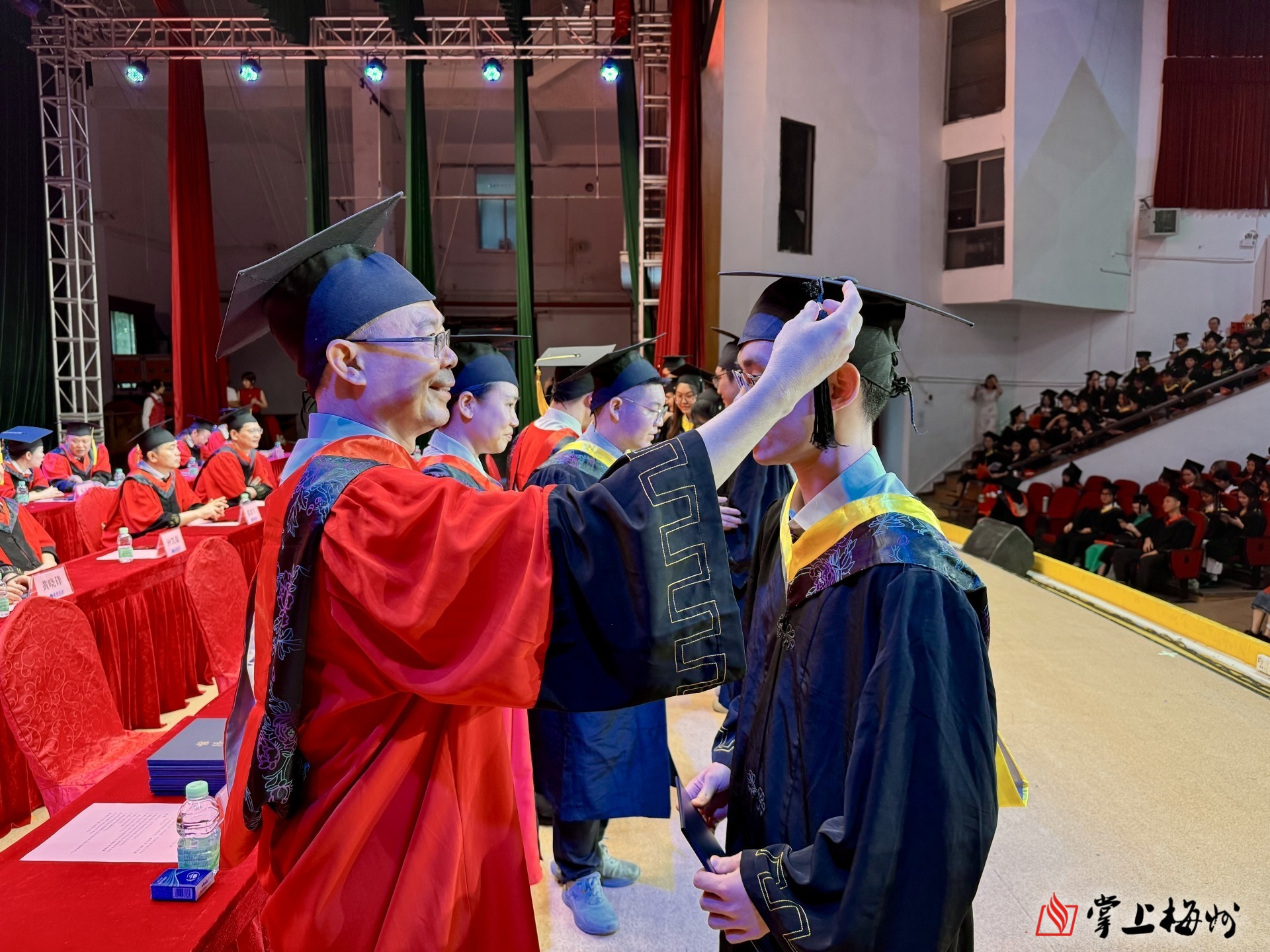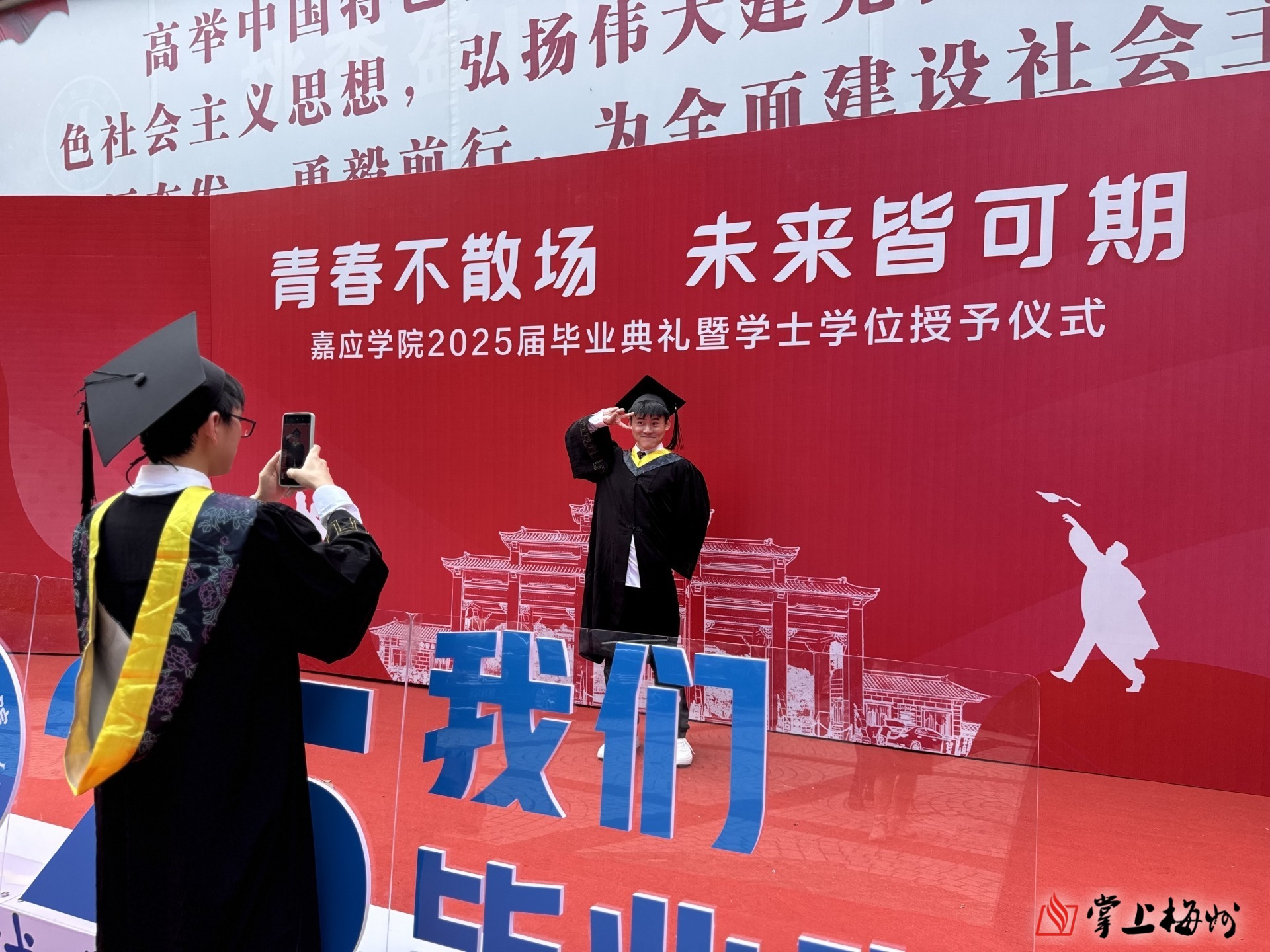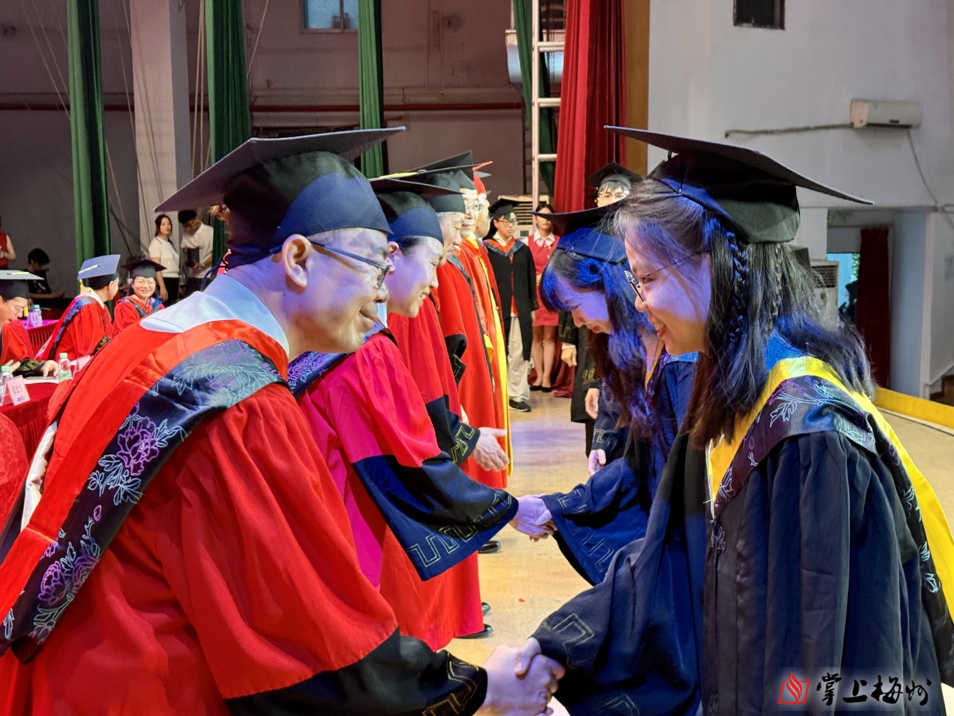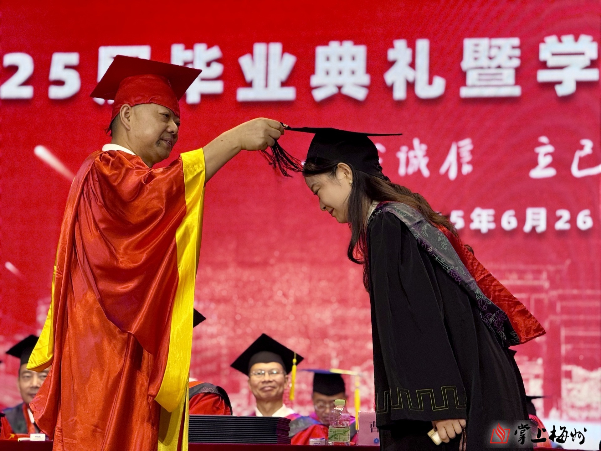 掌上梅州讯 6月26日上午,嘉应学院2025届毕业典礼暨学士学位授予仪式在该校德龙会堂举行,9954名毕业生圆满完成学业,离“嘉”开启新征程。嘉应学院党委书记陈文海、校长曹建忠出席活动,并为毕业生送上真挚祝福。