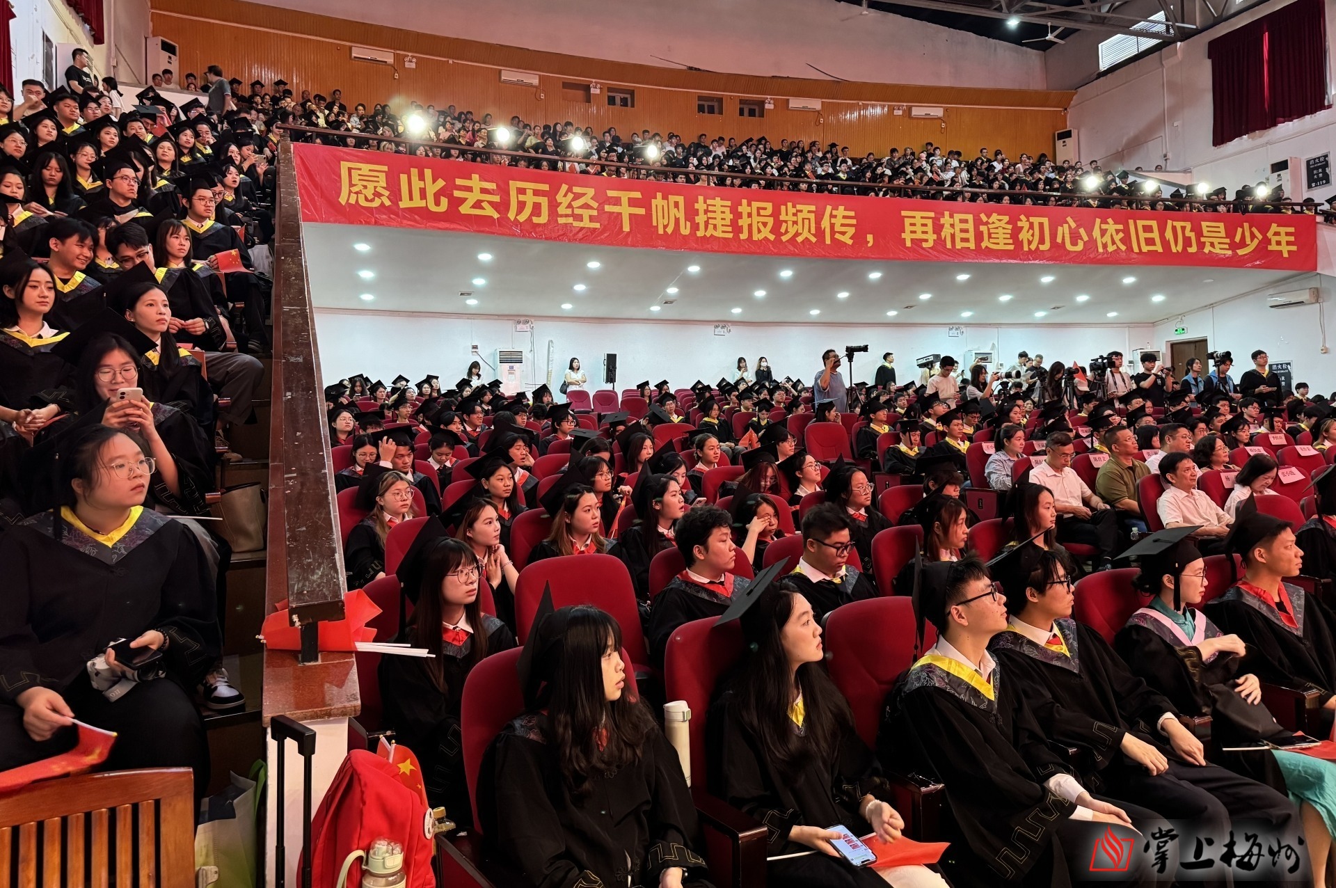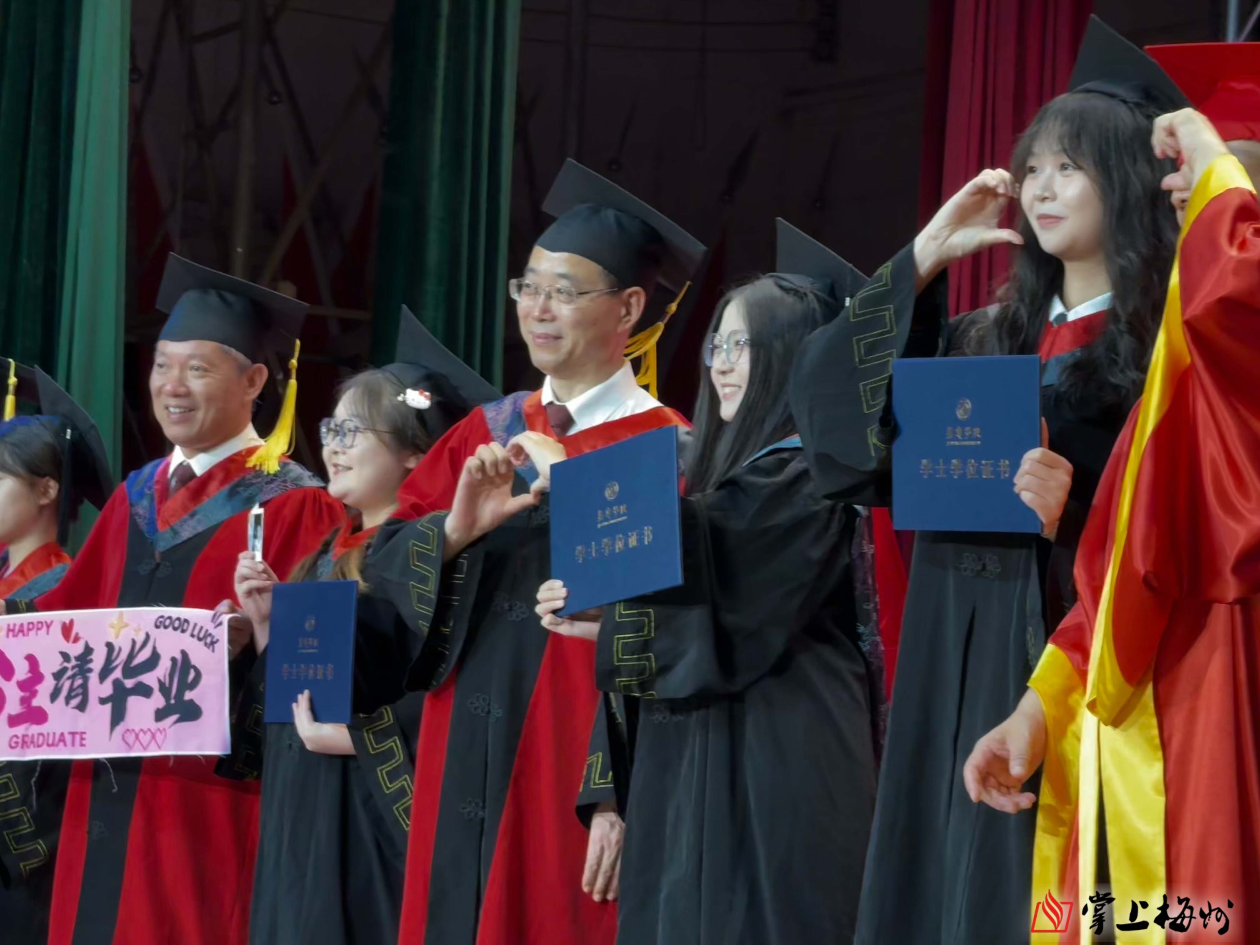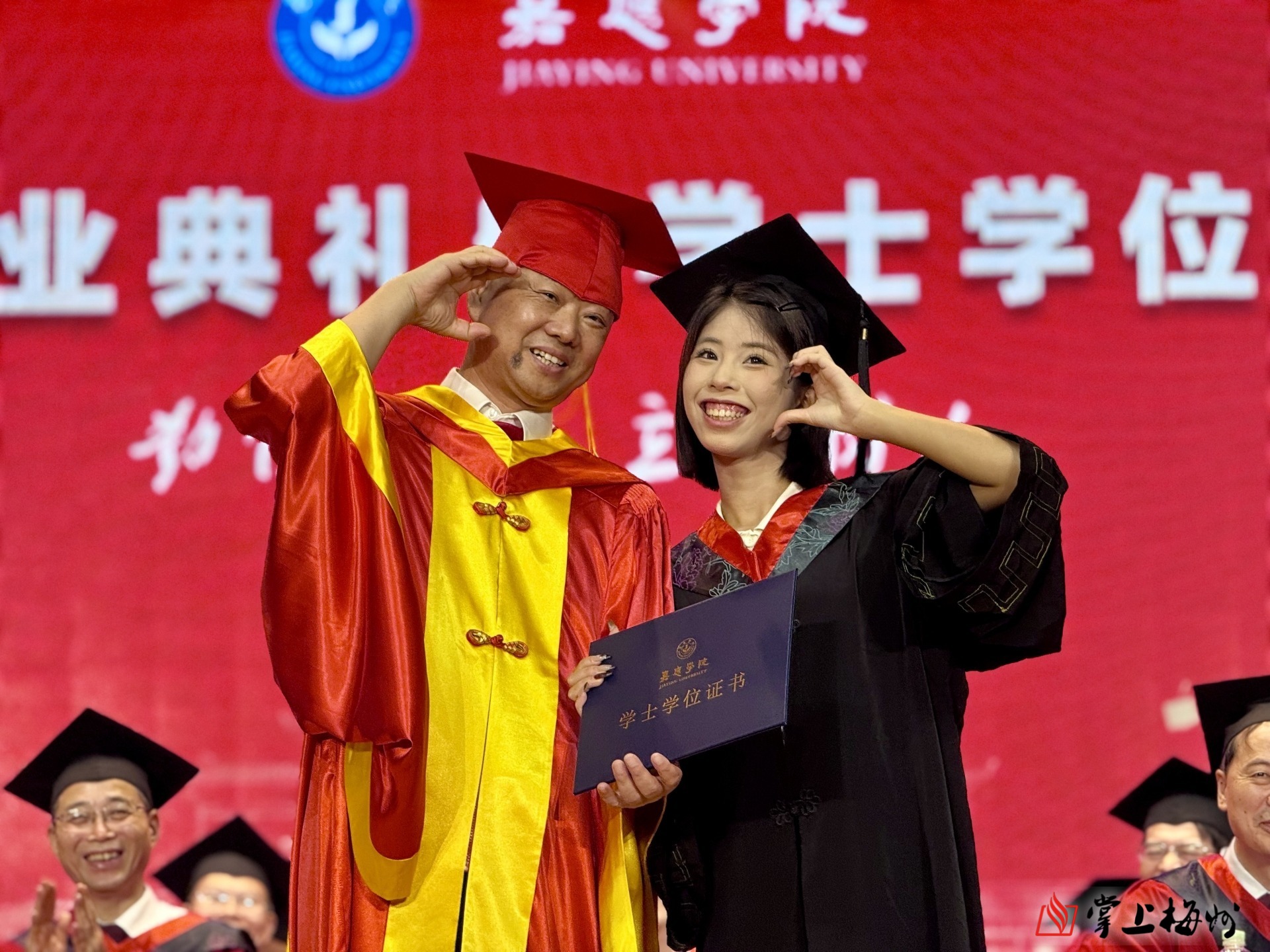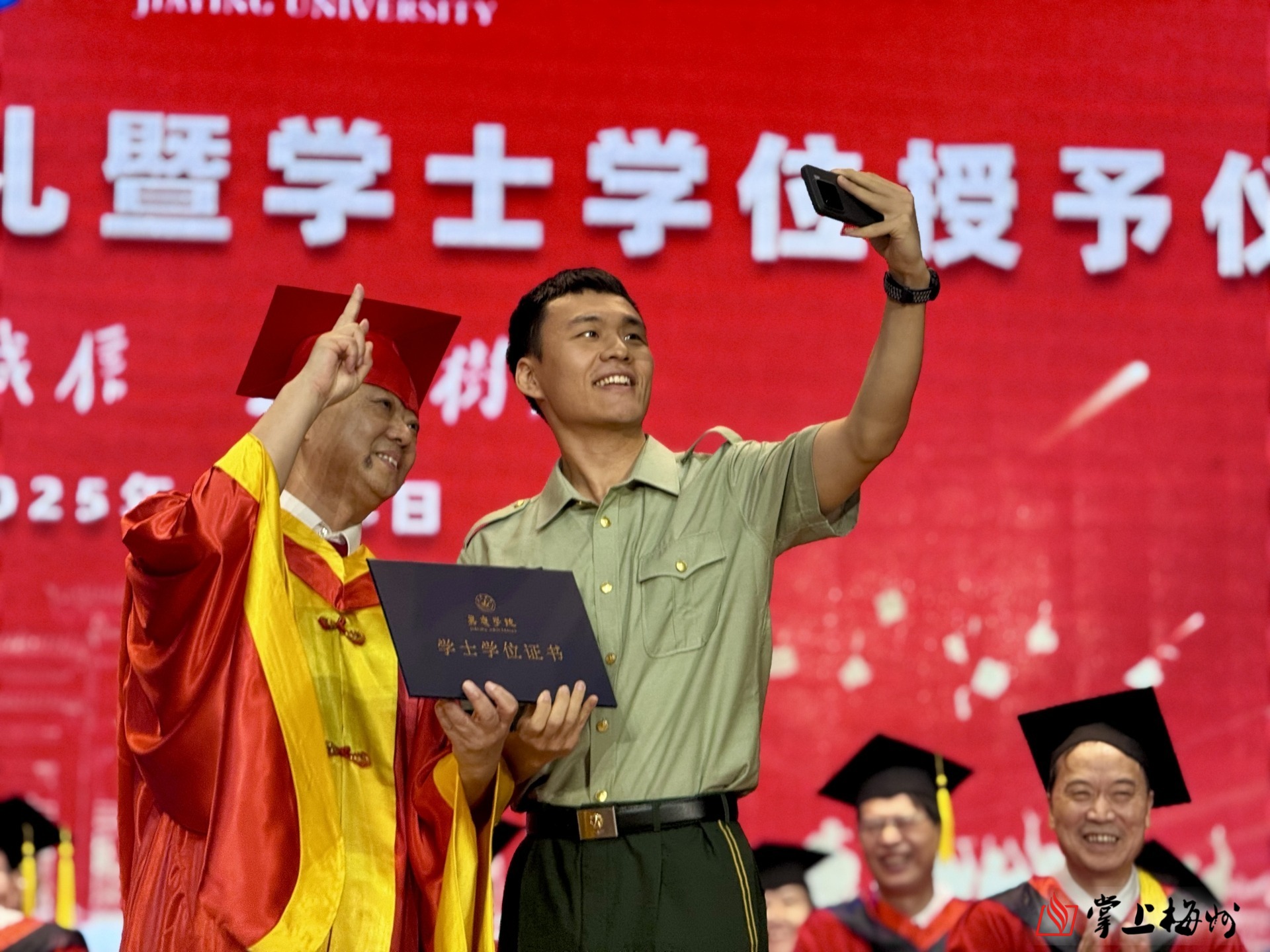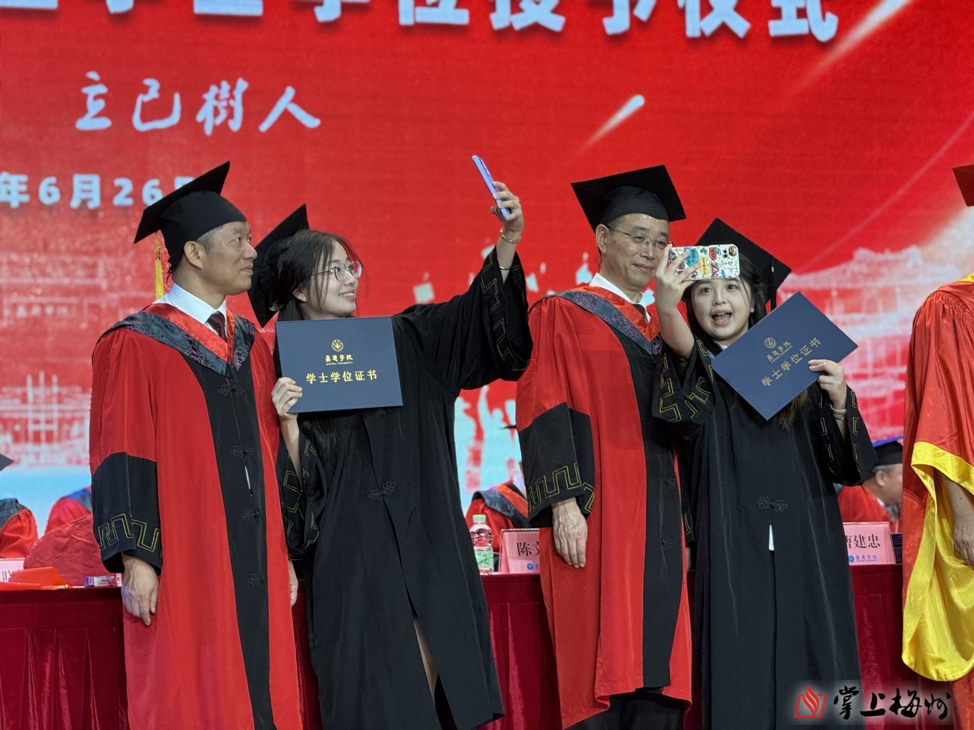 掌上梅州讯 6月26日上午,嘉应学院2025届毕业典礼暨学士学位授予仪式在该校德龙会堂举行,9954名毕业生圆满完成学业,离“嘉”开启新征程。嘉应学院党委书记陈文海、校长曹建忠出席活动,并为毕业生送上真挚祝福。