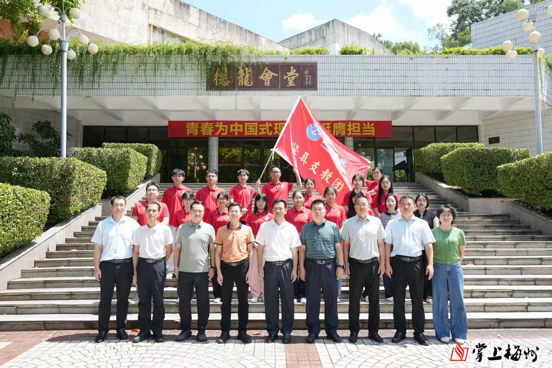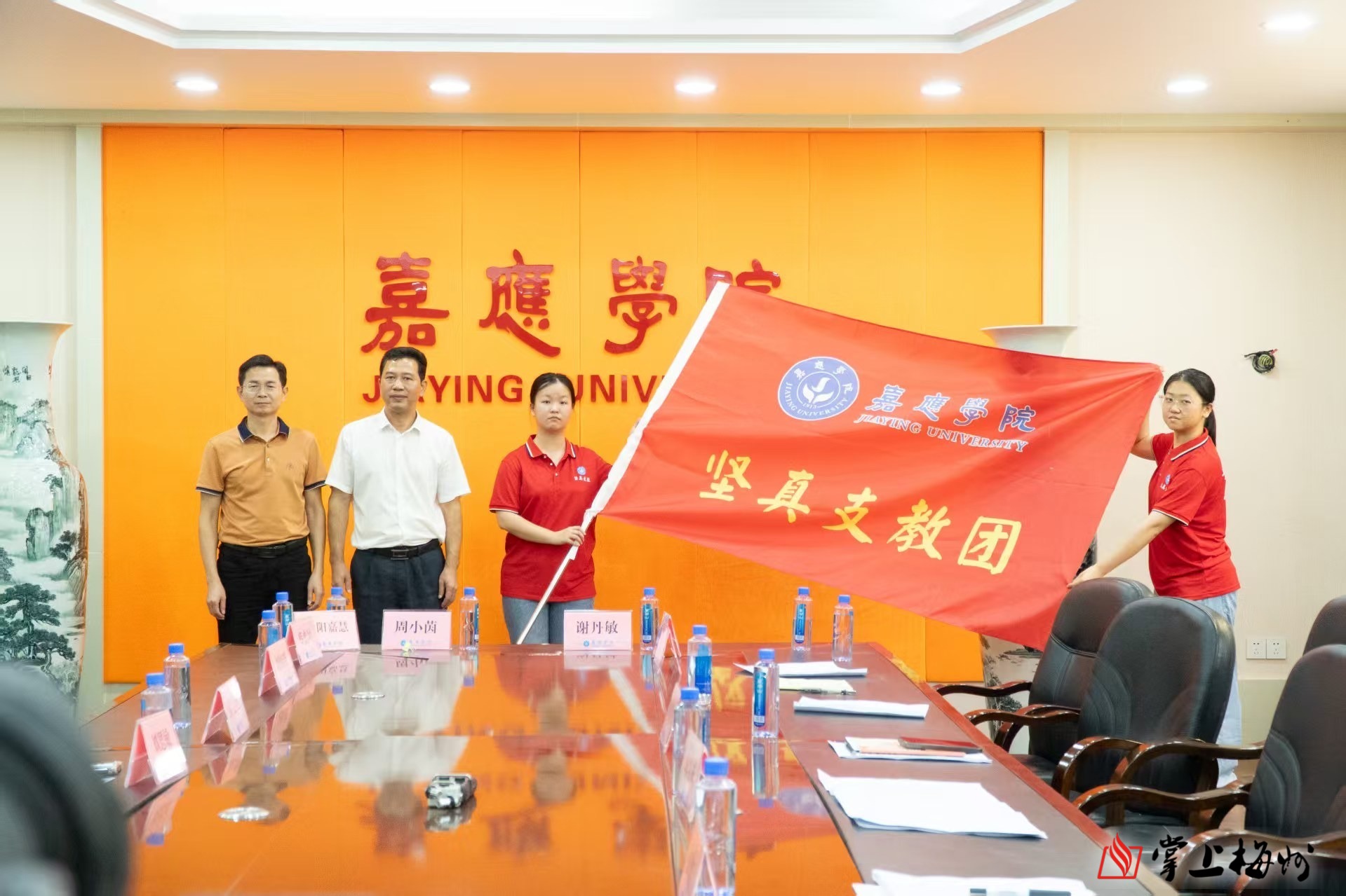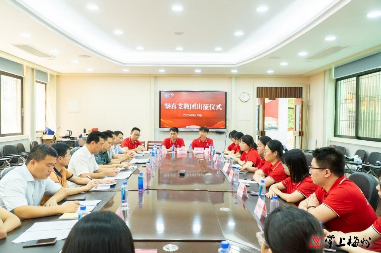 掌上梅州讯 8月29日上午,坚真支教团出征仪式在嘉应学院举行,嘉应学院副校长廖志成,科研与社会服务部(“双百行动”指挥部办公室)、团委、教务部、文学院等部门负责人,丰顺县教育局相关负责人,及首批15名支教团成员出席仪式。