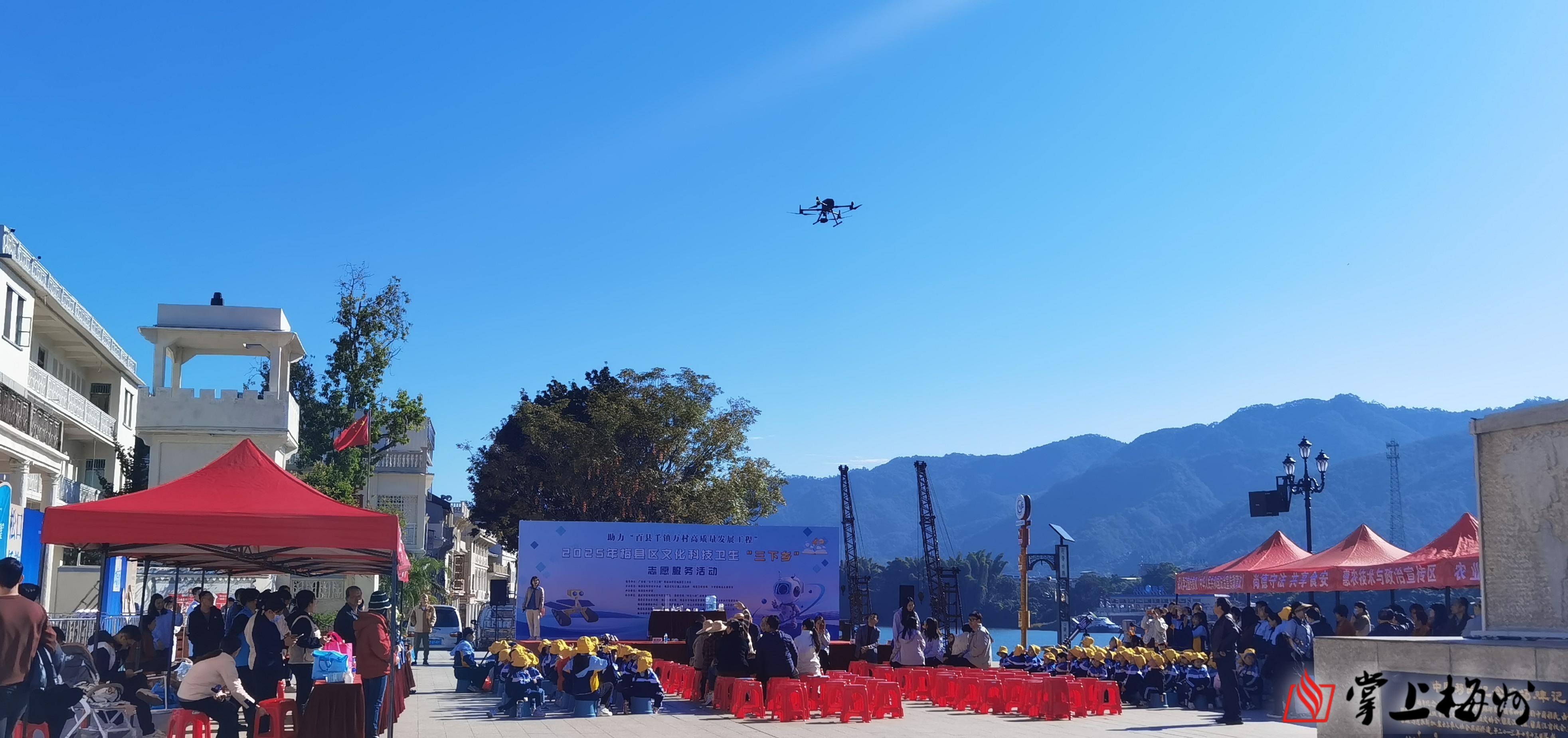 掌上梅州讯 日前,梅县区文化科技卫生“三下乡”科普志愿服务活动在松口镇举行。嘉应学院地理科学与旅游学院(以下简称“地科院”)作为协办单位,充分发挥学科专业优势,精心组织了无人机专题展示,为活动现场带来了科技感十足的亮点,展现了高校服务乡村振兴的创新实践。