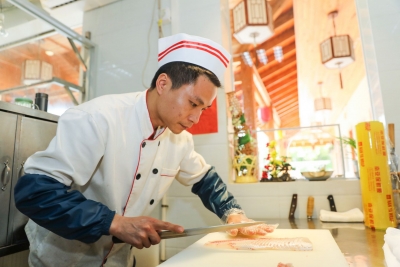 一间“乡村饭店”使用了15年的厨房能保持干净不油腻的状态,并被评为餐饮服务食品安全等级A级