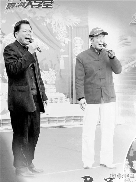 也许是汤老师认为我对山歌“有热情,还有点悟性”,后来我又有两次被他邀请登台一起对唱山歌。每一次与大师登台演唱,对我来说都是一次历练,更是一次鼓舞。可以说,我是汤老师的一个“编外”学生,在与他相处的十几二十年中,我感受到了大师对客家山歌的挚爱、对年轻人的厚爱、对梅州这片土地的热爱!