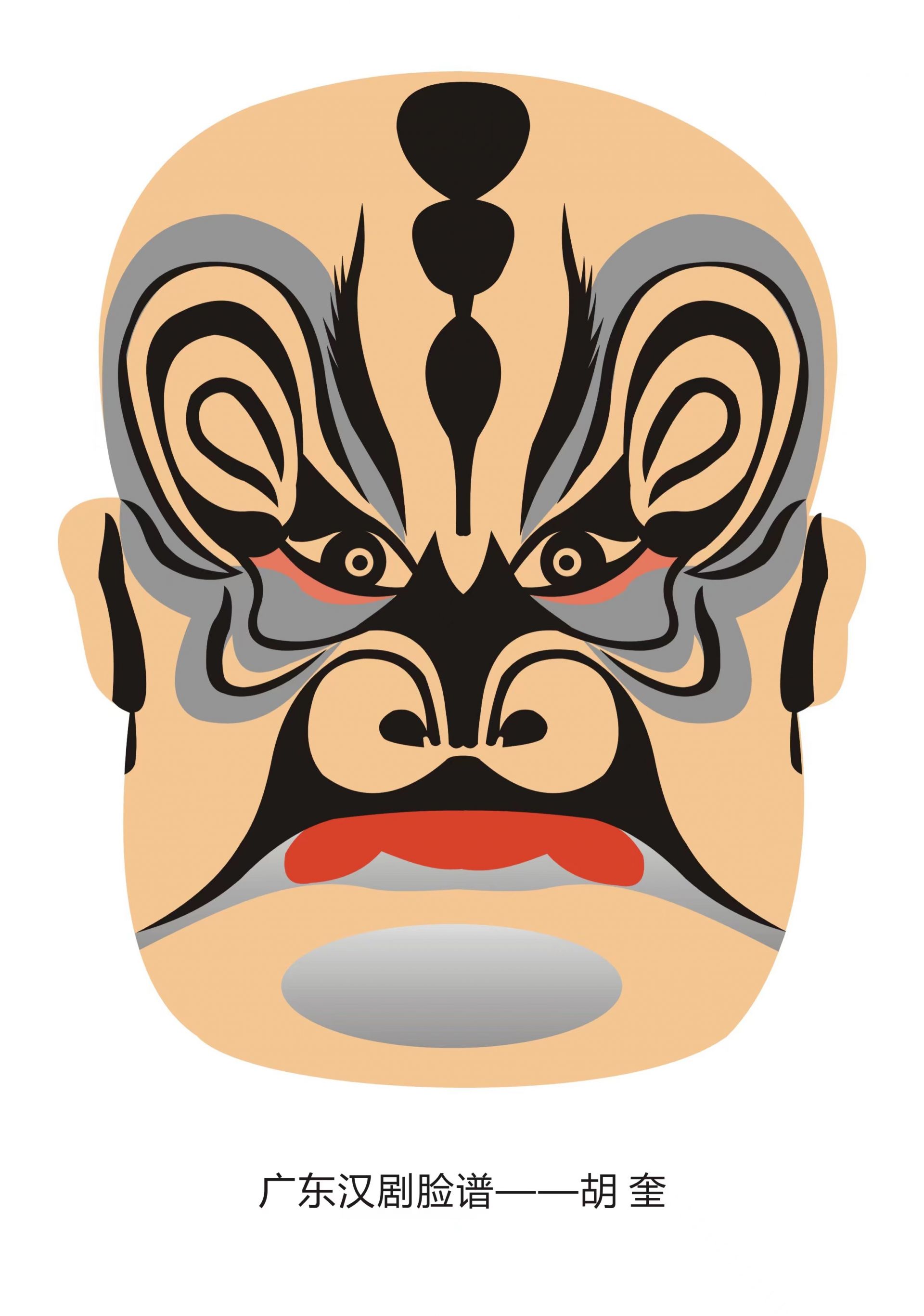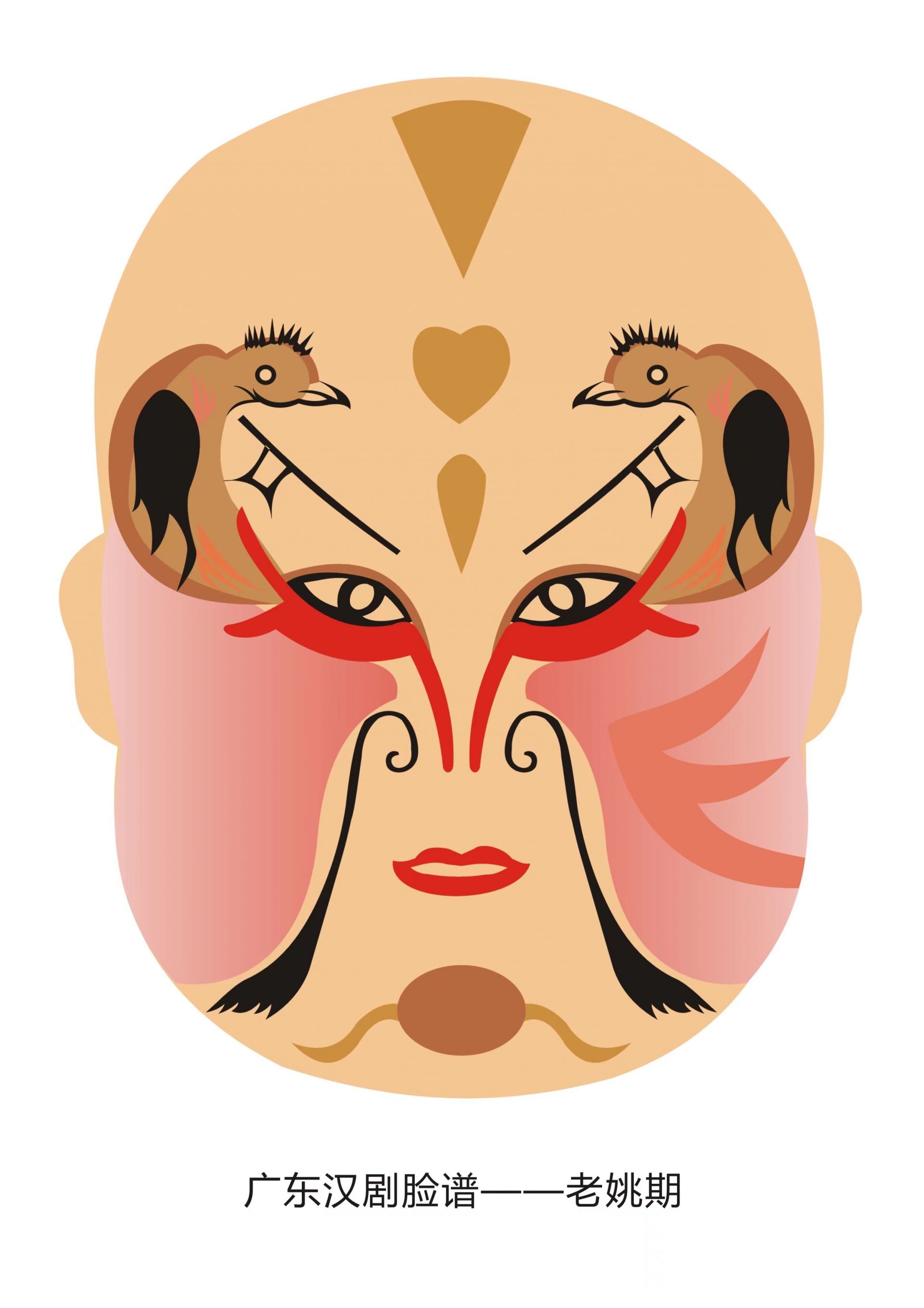 “看戏看脸”是戏剧的传统行话,“形从神出,相由心生”的概念是梨园子弟的表演秘诀。脸谱是中国传统戏剧的文化瑰宝,戏剧演员通过脸部化妆(一般为男角居多),勾画体现剧中人物的艺术特色。这种脸部化妆主要用于它在形式、色彩和类型上的分辨,有一定的规范和格式。作为传统视角和听觉的艺术呈现,内行的观众从脸谱上就可以分辨出这个角色是英雄还是歹人,聪明还是愚蠢,受人爱戴还是使人厌恶。脸谱以“象征性”和“夸张性”著称。它通过运用夸张和变异的图形来展示角色的性格特征。眼睛、额头和两颊通常被画成蝙蝠、蝴蝶或燕子的翅膀形状,再加上夸张的嘴和鼻子,制造出所需的舞台角色的艺术效果。