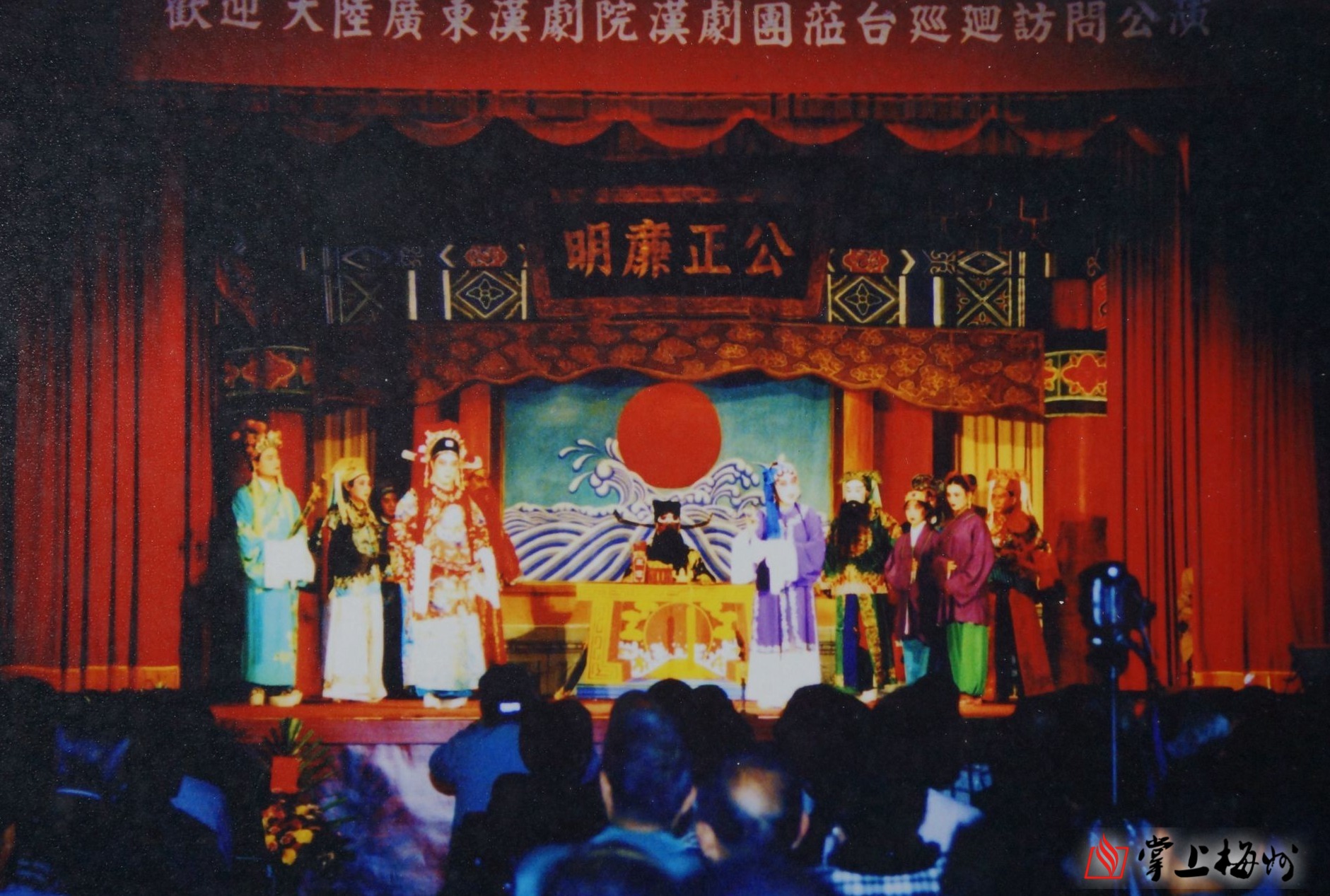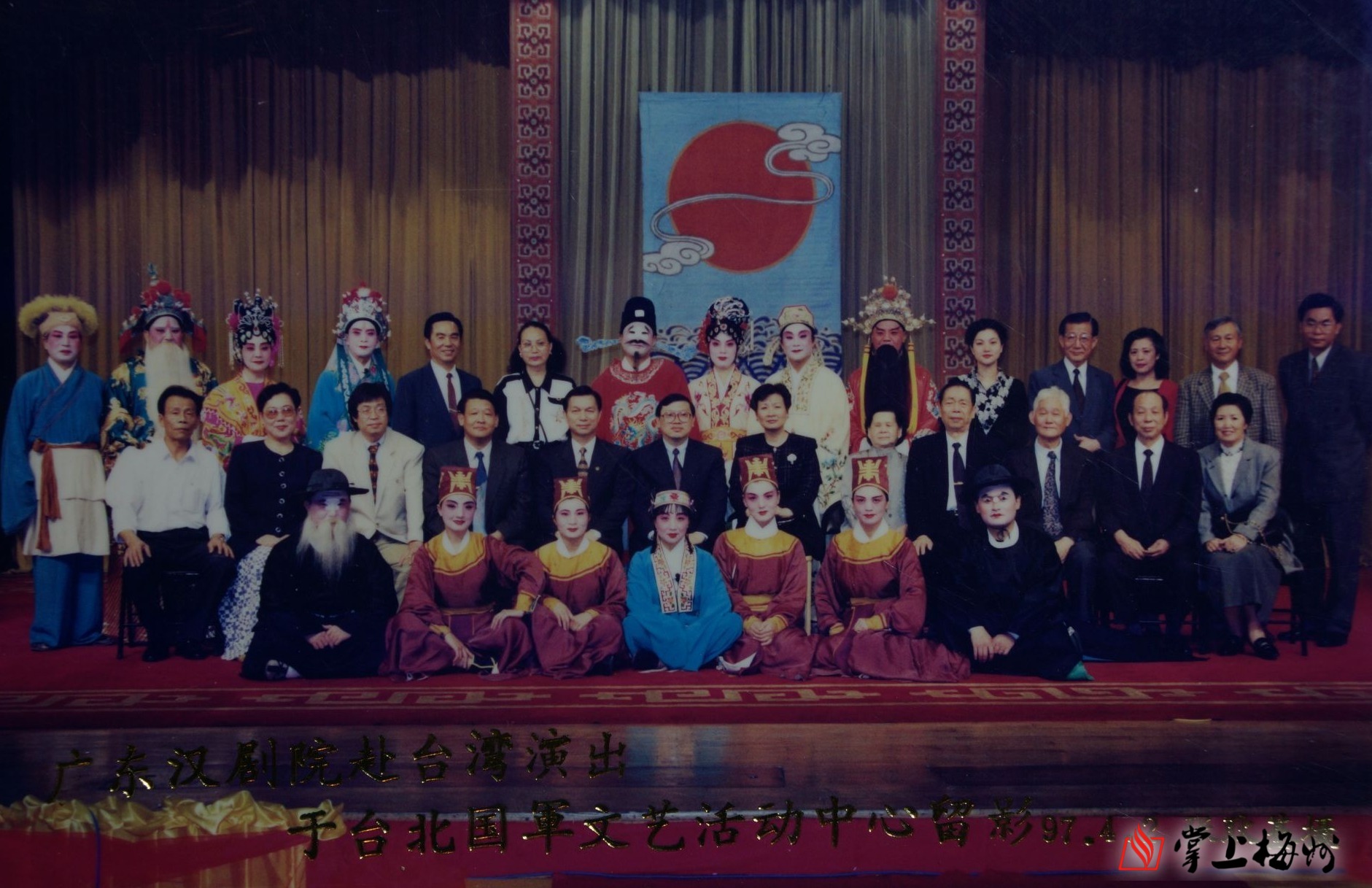 时光荏苒,岁月如歌。中华人民共和国成立后,党和政府十分重视地方剧种的生存状态和传承发展。广东汉剧作为具有三百多年历史的皮黄剧种,迎来了新生和繁荣的岁月。一大批优秀剧目,在不同时期应运而生,在祖国文艺百花园中争妍斗艳;一代又一代广东汉剧艺术人才茁壮成长,在舞台上展示辉煌人生。改革开放,让国际国内文化交流繁花似锦,海峡两岸,同宗同文,血脉相连。距民国时期赴台巡演七十多年后的1997年4月1日,广东汉剧院应台湾苗栗荣兴客家采茶剧团的邀请,在团长古小平、副团长梁素珍的带领下,一行34人踏上宝岛,赴台湾作文化艺术交流。这次赴台演出,是对台湾苗栗荣兴客家采茶剧团1993年应邀参加海峡两岸戏剧节,福建省戏剧汇演及广东省梅州市文化交流演出的回访。1993年12月14日,台湾苗栗荣兴客家采茶剧团在梅州百花洲影剧院,为梅州观众表演了《山上采茶》《送金钗》《桃花过渡》《粜酒》等四场戏剧,博得市民赞赏。这里特别值得一提的一个人,就是祖籍客都梅州的郑荣兴先生,他既是台湾戏曲界的知名专家,又在早年间创立了“台湾苗栗荣兴客家采茶戏剧团”。郑先生心怀桑梓,热心公益,毕生致力于海峡两岸文化交流。他对广东汉剧情有独钟,分外赞赏。特别是在推介和传承客家乡土文化方面,作出了卓越的贡献。先生挚诚,令人感怀!