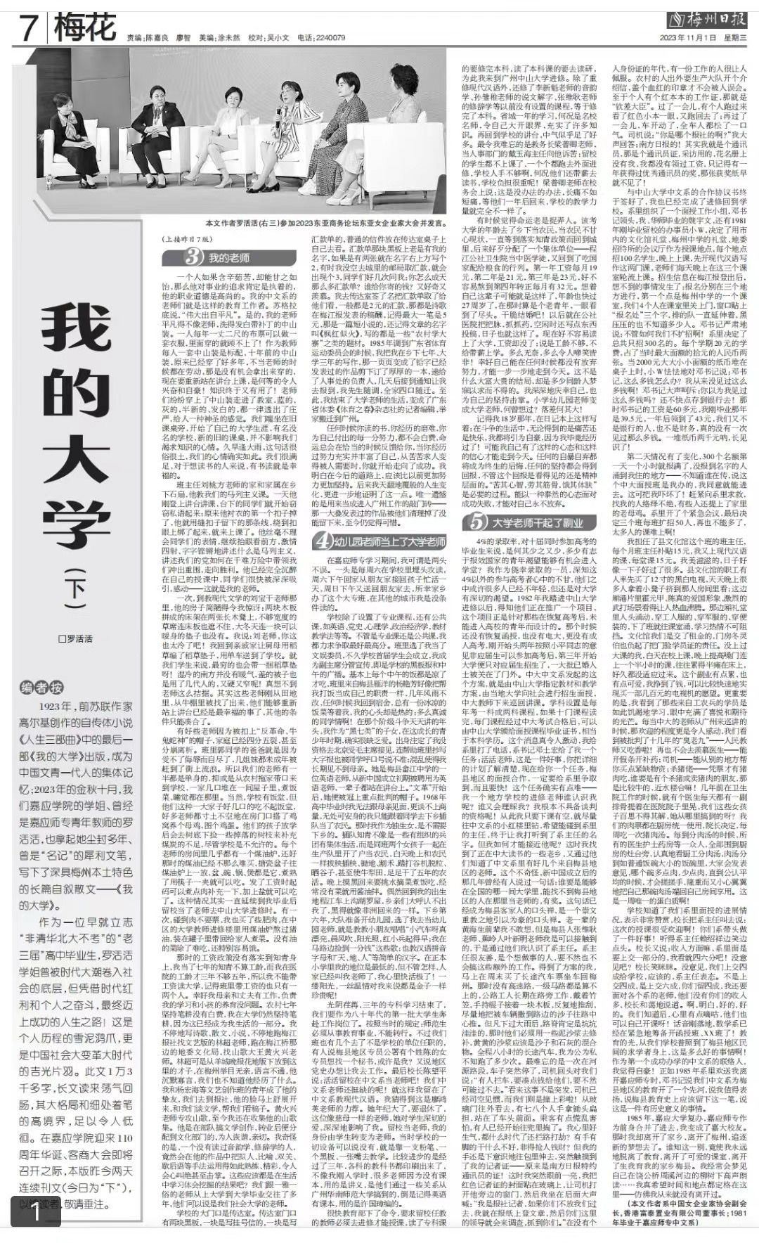1923年,前苏联作家高尔基创作的自传体小说《人生三部曲》中的最后一部《我的大学》出版,成为中国文青一代人的集体记忆;2023年的金秋十月,我们嘉应学院的学姐、曾经是嘉应师专青年教师的罗活活,也拿起她尘封多年、曾是“名记”的犀利文笔,写下了深具梅州本土特色的长篇自叙散文——《我的大学》。