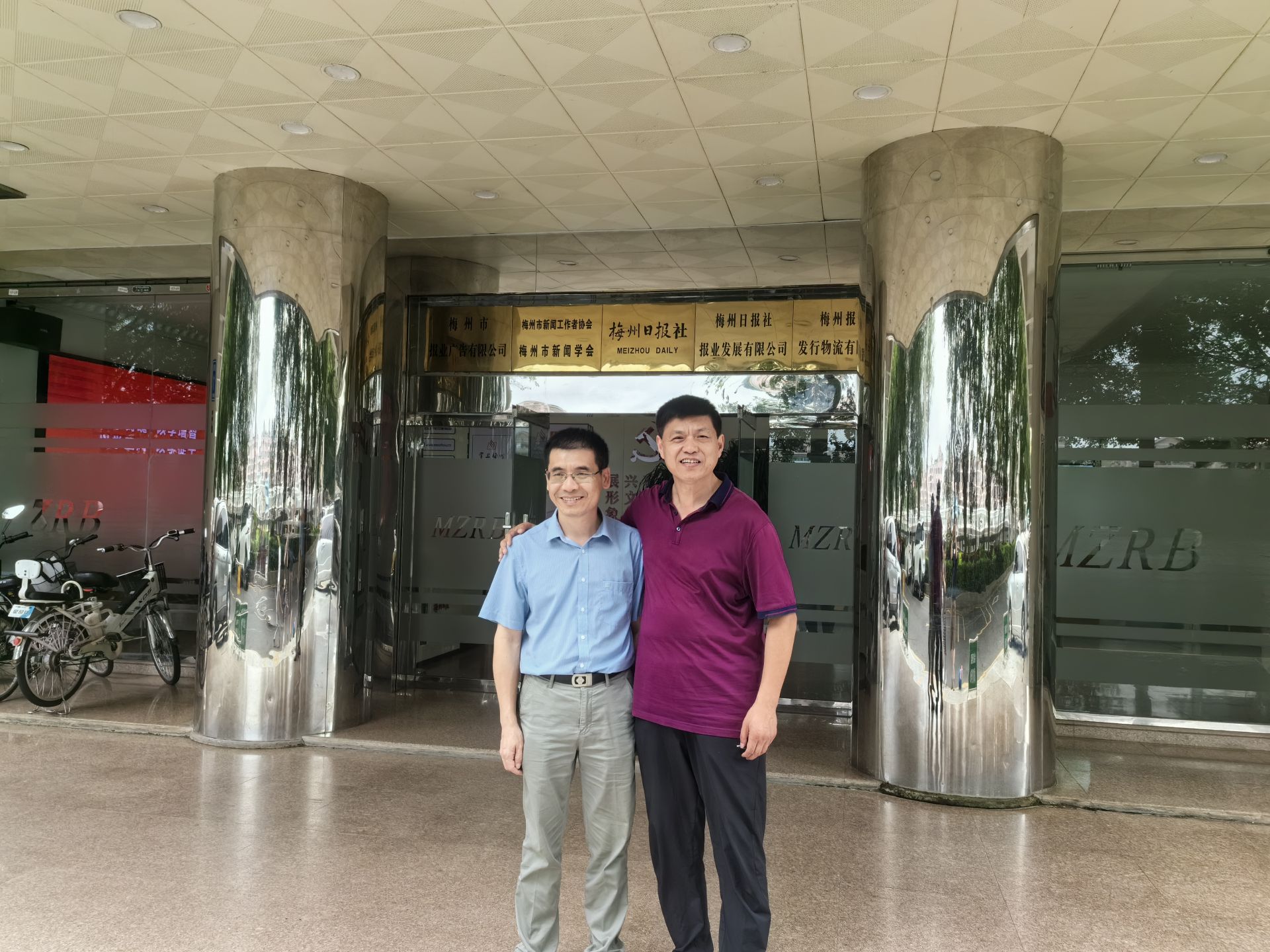与《梅州侨乡月报》主编刘奕宏先生在梅州日报社合影